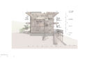 敷地はひな壇状の土地であったため、造成を最低限に抑えるために日本建築の懸造を参照した。