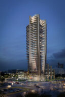 Located within New Belgrade’s Block 32, the new tower is adjacent to the Merkator Shopping Center and within walking distance of the Usce Park promenade at the confluence of the Sava and Danube rivers. These unique site conditions have defined the composition and orientation of the tower’s 35-storey design.