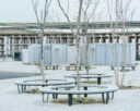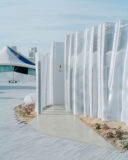 鈴木淳平・村部塁・溝端友輔による、大阪・関西万博の「島の蜃気楼(トイレ7)」。“象徴的な建築群”に囲まれた広場での計画。“周囲の現象のみ”を際立たせる在り方を求め、“蜘蛛の巣状”の平面形で“3Dプリント製のポリカパネル”を纏った建築を考案。環境との関係の中で存在が浮かび上がる