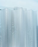 バリアフリートイレの壁面には3Dプリントの壁を2重に設置し、フルハイトの光の面をつくりだした。波形状の3Dプリントのパネルは製造時の歪みを多く含み、それらも建築の表情として積極的に取り入れている。反射性と透過性をあわせ持つ湾曲したパネルは、周囲の光を複雑にとらえ、周辺環境との関係によってその存在が浮かび上がる。
