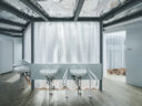 内部の天井は柔らかなアルミニウムの断熱材を用い、ふわふわとした光の面となるように設計した。