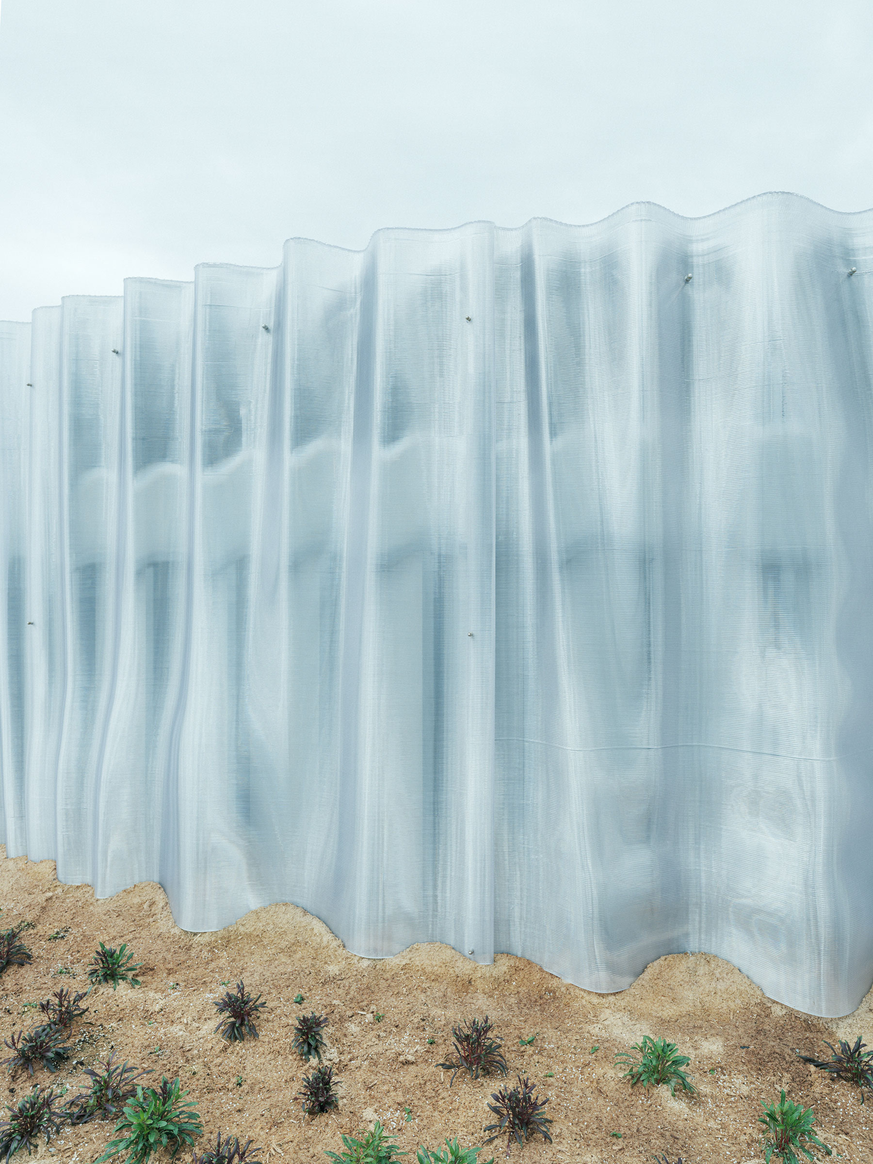 会期中に現れ、その後はまた別の場所へ循環していく、刹那的な光を纏う建築は、島に浮かぶ蜃気楼のようである。