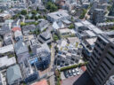 黒川智之建築設計事務所による、東京・渋谷区の「広尾の集合住宅」。“成熟した住宅地”での計画。都市の密度と良好な住環境の両立を求め、“雁行する平面”と“壇状の断面”でヴォリュームを分節する建築を考案。採光や眺望などの空間的豊かさを創出しつつ周辺への圧迫感も軽減俯瞰、北側より見下ろす。 photo©中山保寛