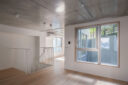 また、1階にはSOHO利用を想定した長屋形式の住戸を設け、在宅勤務や多様な働き方が定着する中で、職住一体のライフスタイルに柔軟に応える構成とした。密度の高い都市においても、自然を感じながら働き暮らすことができる空間を提供することで、居住者にとっての快適性と、地域に対する開かれた姿勢を同時に実現した計画である。