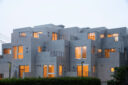 黒川智之建築設計事務所による、東京・渋谷区の「広尾の集合住宅」。“成熟した住宅地”での計画。都市の密度と良好な住環境の両立を求め、“雁行する平面”と“壇状の断面”でヴォリュームを分節する建築を考案。採光や眺望などの空間的豊かさを創出しつつ周辺への圧迫感も軽減外観、北西側より見る。夕景 photo©中山保寛