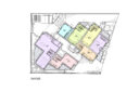 黒川智之建築設計事務所による、東京・渋谷区の「広尾の集合住宅」。“成熟した住宅地”での計画。都市の密度と良好な住環境の両立を求め、“雁行する平面”と“壇状の断面”でヴォリュームを分節する建築を考案。採光や眺望などの空間的豊かさを創出しつつ周辺への圧迫感も軽減1階平面図 image©黒川智之建築設計事務所