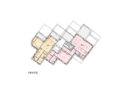 黒川智之建築設計事務所による、東京・渋谷区の「広尾の集合住宅」。“成熟した住宅地”での計画。都市の密度と良好な住環境の両立を求め、“雁行する平面”と“壇状の断面”でヴォリュームを分節する建築を考案。採光や眺望などの空間的豊かさを創出しつつ周辺への圧迫感も軽減2階平面図 image©黒川智之建築設計事務所