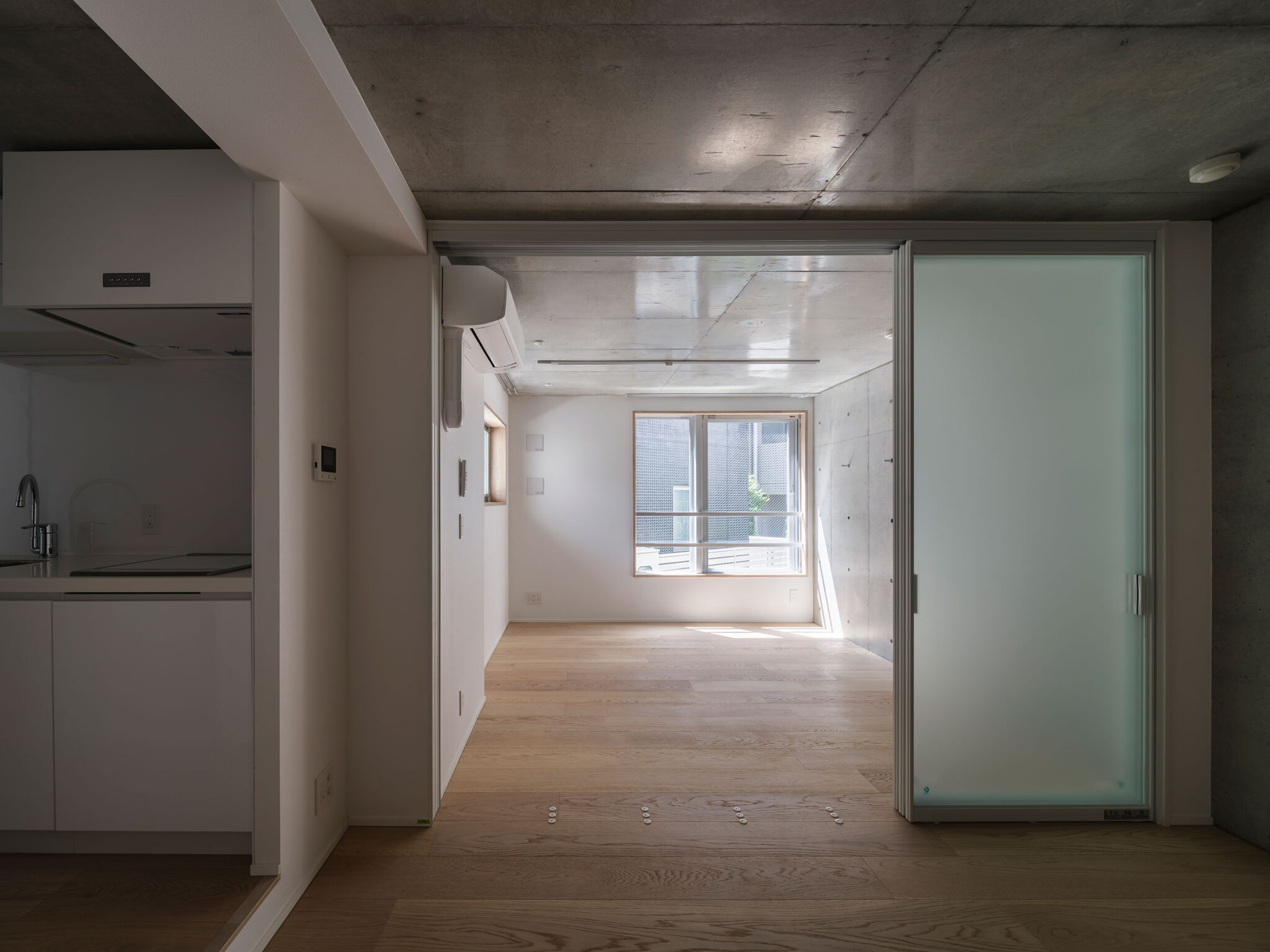 黒川智之建築設計事務所による、東京・渋谷区の「広尾の集合住宅」。“成熟した住宅地”での計画。都市の密度と良好な住環境の両立を求め、“雁行する平面”と“壇状の断面”でヴォリュームを分節する建築を考案。採光や眺望などの空間的豊かさを創出しつつ周辺への圧迫感も軽減4階、住戸401 photo©中山保寛