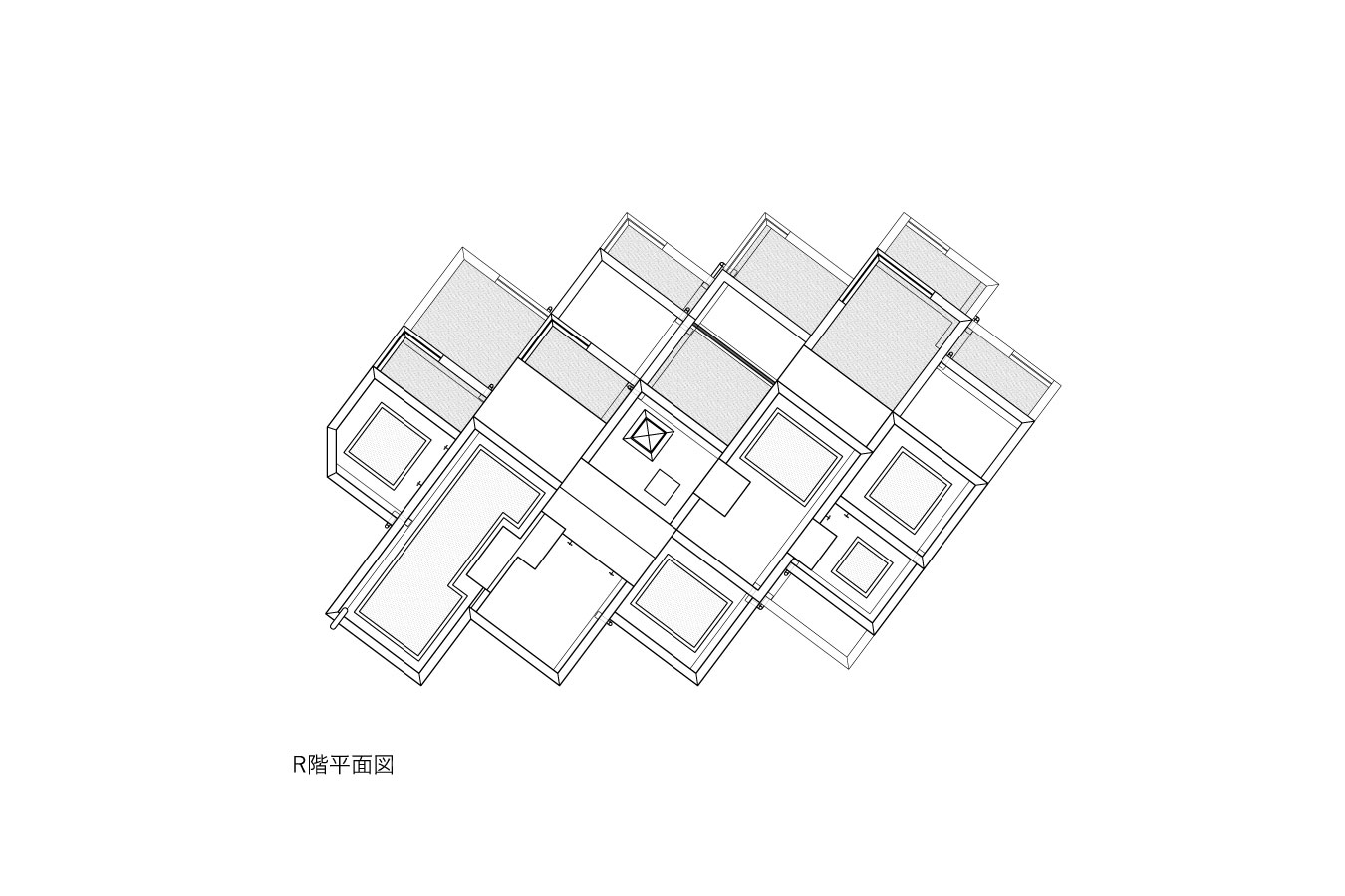 黒川智之建築設計事務所による、東京・渋谷区の「広尾の集合住宅」。“成熟した住宅地”での計画。都市の密度と良好な住環境の両立を求め、“雁行する平面”と“壇状の断面”でヴォリュームを分節する建築を考案。採光や眺望などの空間的豊かさを創出しつつ周辺への圧迫感も軽減屋上階平面図 image©黒川智之建築設計事務所
