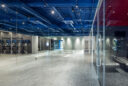 - ODS / 鬼木孝一郎による、東京・千代田区の店舗「DESCENTE 新丸ビル」。商業フロアの中での計画。ブランドの哲学である“機能美”の表現を意図し、ステンレス・面発光・ガラスなどで構成する空間を考案。ロゴから着想を得て“45度傾斜”した素材使いも各所に採用する