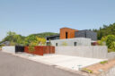 建築は施主の要望からシンプルな箱型とし、スタックとシフトの繰り返しで構成され、それと同時に外構の塀も同じようにシフトをしながら配置された。