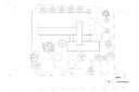 押山剛司建築設計事務所による「栃木の家」。戸建てと田んぼが入り混じる住宅街の敷地。植物や庭いじりが好きな施主の為に、個性的な複数の庭と建築が“絡み合う”ような平面構成を志向。箱形をベースとして“スタックとシフト”を繰り返して造り上げる1階平面図 image©押山剛司建築設計事務所
