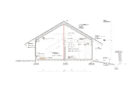 青柳創と青柳綾夏による、岩手の「金ケ崎の家」。寄棟屋根や左官真壁の採用が必須な地域。意思と無関係に“外形が決まる”状況に対し、通常と異なり“内部の空洞”の支え方を思考せざる負えない設計過程に着目。空洞を実態に変質させるべく極細列柱の構造体を考案断面図 image©青柳創+青柳綾夏