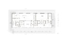 青柳創と青柳綾夏による、岩手の「金ケ崎の家」。寄棟屋根や左官真壁の採用が必須な地域。意思と無関係に“外形が決まる”状況に対し、通常と異なり“内部の空洞”の支え方を思考せざる負えない設計過程に着目。空洞を実態に変質させるべく極細列柱の構造体を考案1階平面図 image©青柳創+青柳綾夏