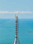 Engineered to optimise structural performance without impairing views of the setting sun, a sculptural 200-metre concrete mast has been designed to be as slender as possible while safely supporting the bridge’s 450-metre central span in extreme weather conditions and seismic events.