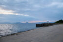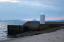 大室佑介アトリエによる、香川・多度津町の「鳥のための塔」。アート祭への出展作品として計画。“雄大な自然への敬意”と“墓地に近接する立地”も考慮し、島の一部となる“ささやかな塔”を志向。正八角形の柱の中に“円筒状”の内部空間を作って中谷ミチコのレリーフを配置外観、北西側より見る。夕景 photo©若林勇人