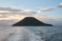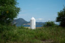 大室佑介アトリエによる、香川・多度津町の「鳥のための塔」。アート祭への出展作品として計画。“雄大な自然への敬意”と“墓地に近接する立地”も考慮し、島の一部となる“ささやかな塔”を志向。正八角形の柱の中に“円筒状”の内部空間を作って中谷ミチコのレリーフを配置海側より島全体を見る。 photo©若林勇人
