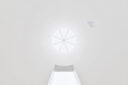 1:1+1.618の縦横比で穿たれた開口から入ると、内部はφ1,500mmの円筒状になっており、半透明の屋根から注ぐ自然光が漆喰塗りの壁面をなぞって光の井戸のような空間を形成している。