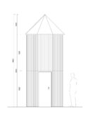 大室佑介アトリエによる、香川・多度津町の「鳥のための塔」。アート祭への出展作品として計画。“雄大な自然への敬意”と“墓地に近接する立地”も考慮し、島の一部となる“ささやかな塔”を志向。正八角形の柱の中に“円筒状”の内部空間を作って中谷ミチコのレリーフを配置立面図 image©大室佑介アトリエ / atelier Ichiku