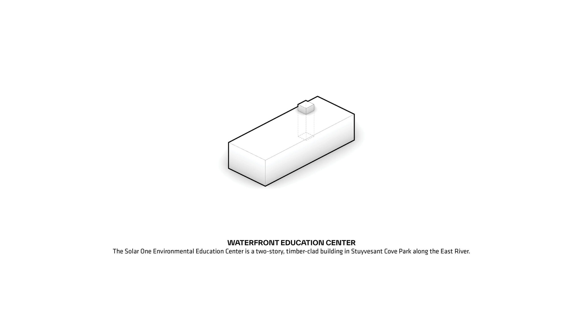 イースト23丁目とアベニューCに位置し、ESCRの北側の玄関口となるのが、新しいソーラー・ワン環境教育センターです。この施設は、BIGがNYC経済開発公社(NYCEDC)、ギルベイン・ビルディング・カンパニー、TYLin(旧Silman)、コセンティーニ・アソシエイツ、MNLAなどとともに設計しました。太陽光発電パネルと蓄電池を最初から組み込んだニューヨーク市初の建物として、この6,409平方フィート(約595平方メートル)の木材で覆われた施設は、旧ソーラー・ワンの建物の後継となります。旧施設は、ハリケーン・サンディの際に34丁目以南で電力網が停止した際、地域住民に太陽光による充電電力を提供し、重要な避難所となりました。現在、この2階建てのセンターは、ニューヨーク市全域で環境教育、研修、技術支援を提供するというソーラー・ワンの使命をさらに拡大しています。その中には、NYCの公立学校におけるK-12(幼稚園から高校まで)のSTEM教育プログラムや、地域のイベントのための柔軟に使える教室も含まれています。