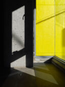 黄色の塗装が見えるスリットの階段を数段上がってたどり着く一室を、建築家とキャスティングディレクター夫婦の自邸兼仕事場として設計した。二人とも仕事とプライベートの境界が曖昧で、その曖昧さを楽しみ、集中したいときには自分の世界に没頭できる場所が必要であった。共用部まで続く動線と空間構成を住戸内にまで引き込むことで緩やかに連なる空間を作った。