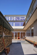 宮崎晃吉 / HAGISOによる、群馬の住宅「前橋の道の輪郭」。路地状の共有地などが見られる街区での計画。建築の時間と住み手の時間との折合いも主題とし、読み替えられながらも生き続ける存在を志向。路地の延長線上の“たまり”となる中庭の周りに諸室を配置する建築を考案中庭 photo©楠瀬友将