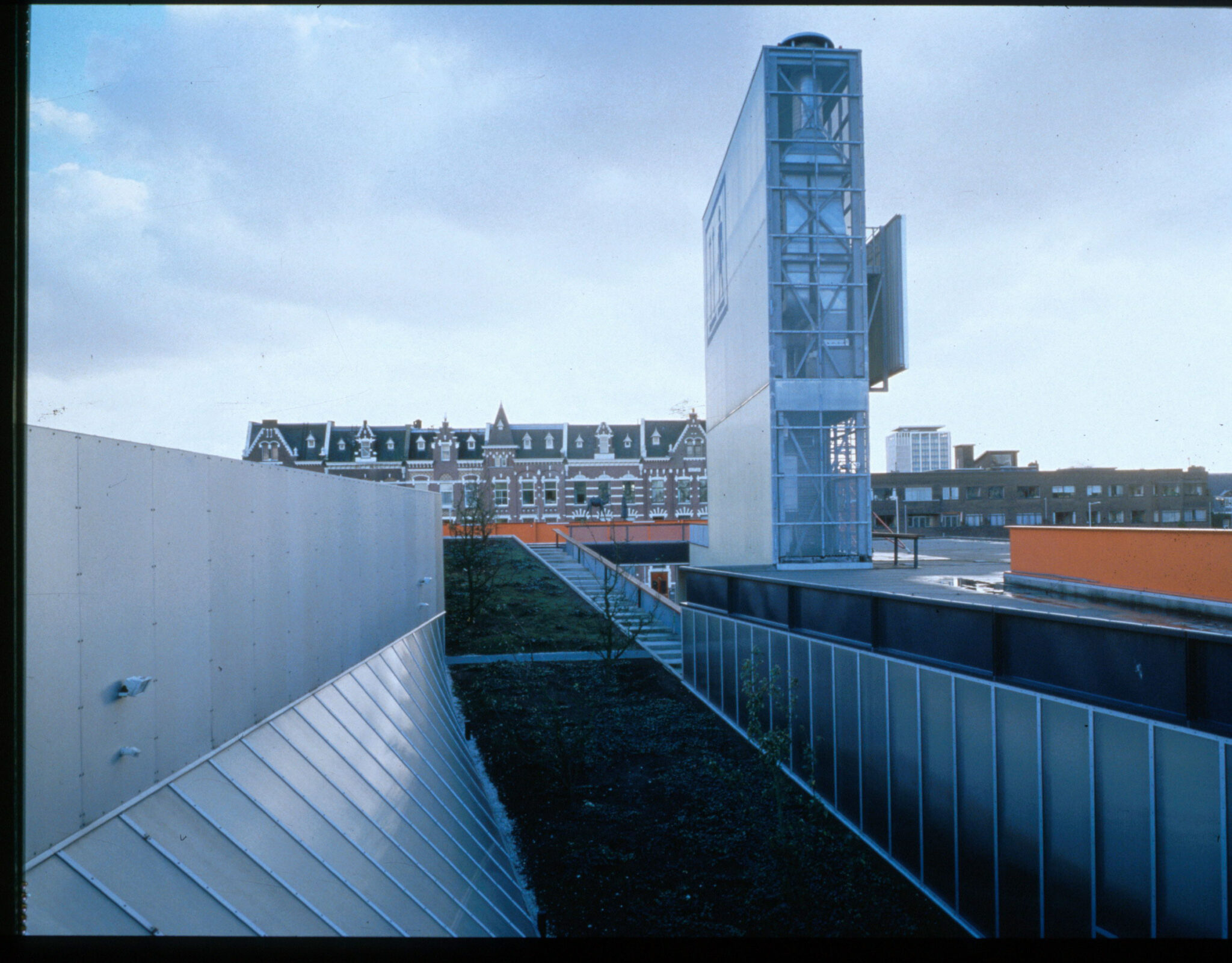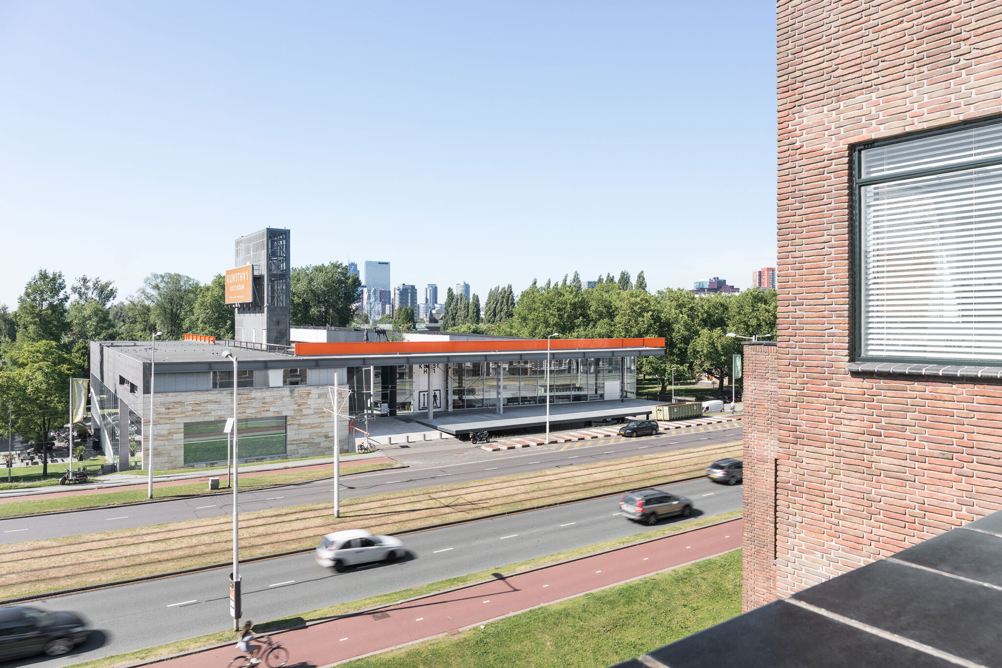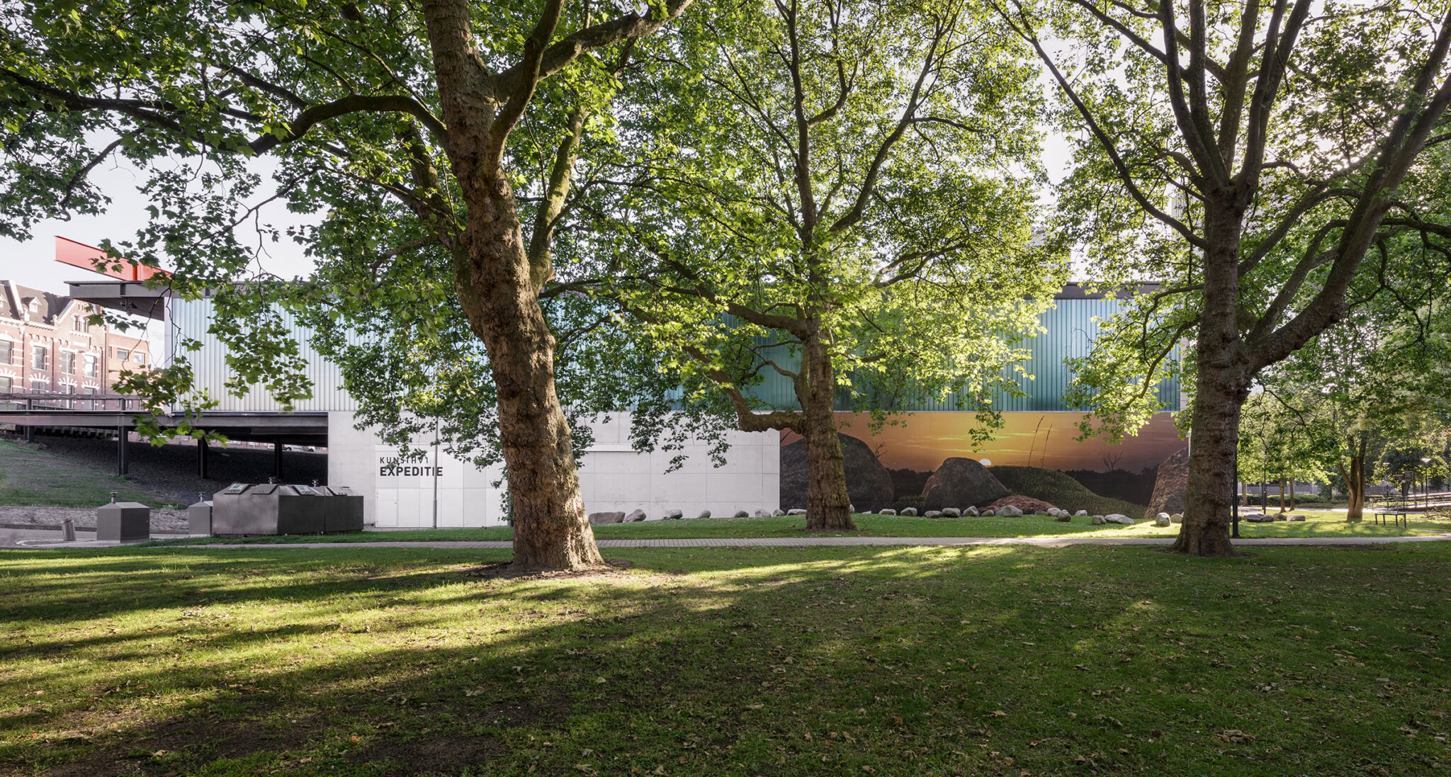 The site presents a dual condition: the southern edge is bordered by the Maasboulevard, a ‘highway’ on top of a dike. The northern side, a level lower, faces the Museum Park – conventional contemplation.