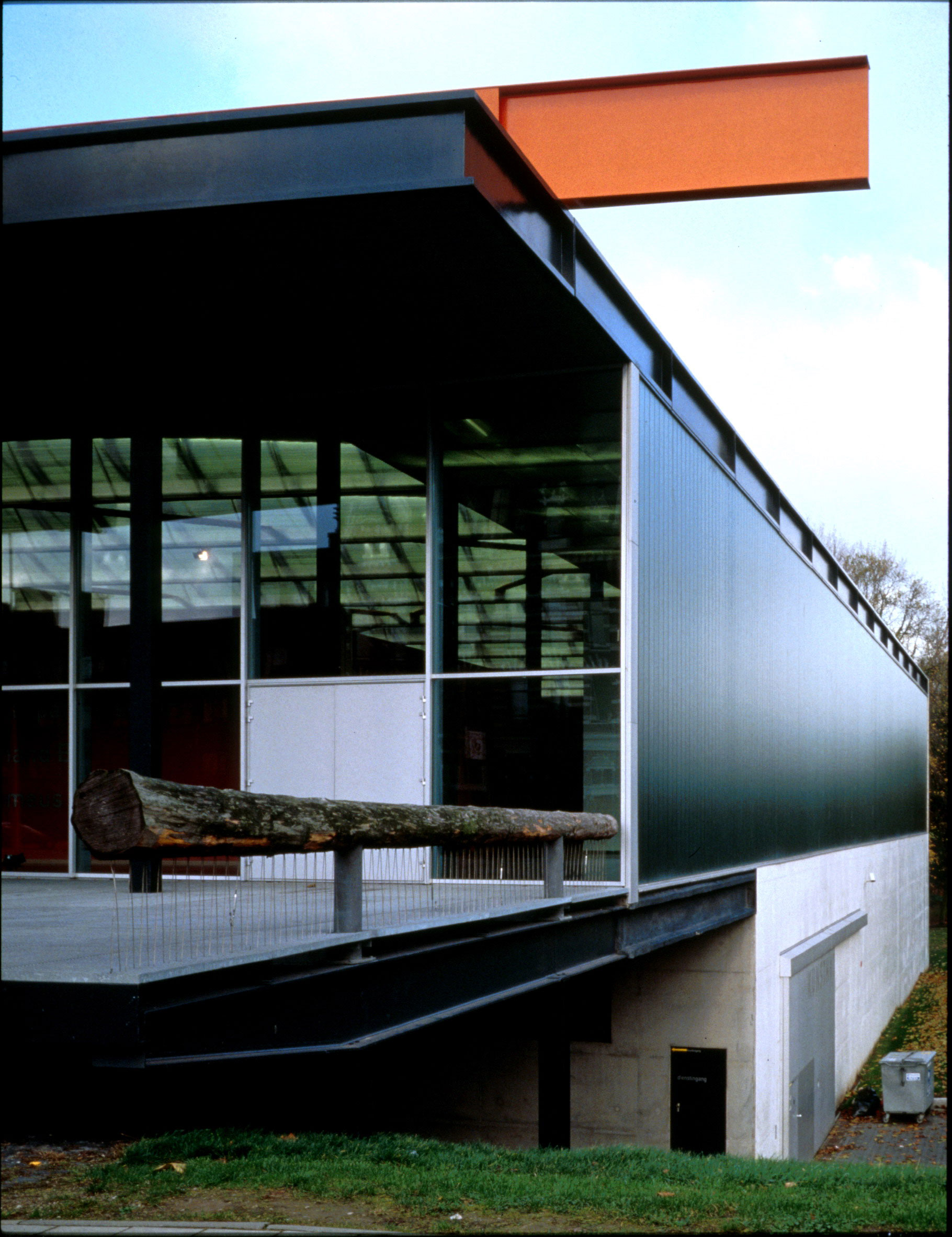 The Kunsthal combines 3300 square meters of exhibition space, an auditorium and restaurant into one compact design. Sloping floor planes and a series of tightly organized ramps provide seamless connection between the three large exhibition halls and two intimate galleries. Its position, wedged between a busy highway and the network of museums and green spaces known as the museum park, allows it to function as a gateway to Rotterdam’s most prized cultural amenities. The program demanded three major exhibition spaces – to be used jointly or separately, an auditorium and an independently accessible restaurant.
