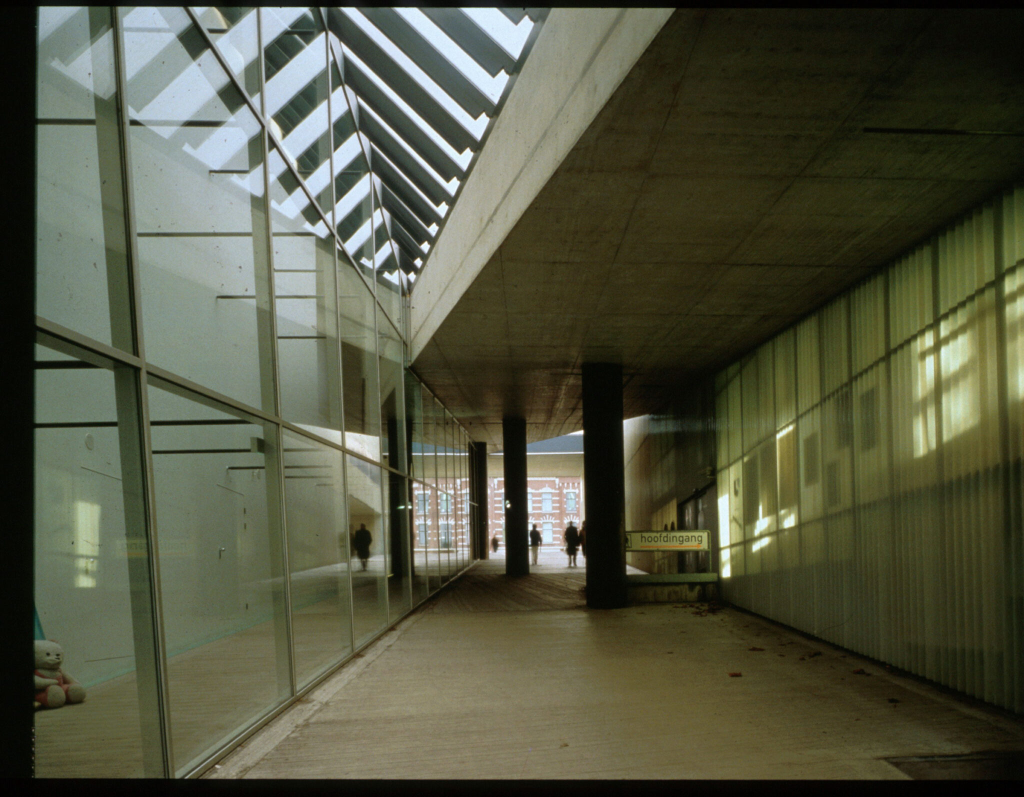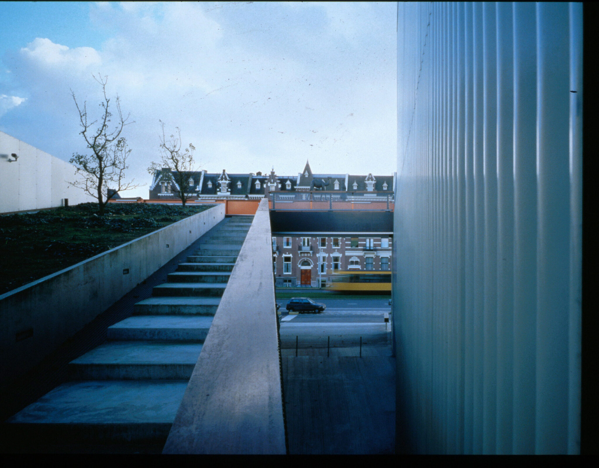 The building was conceived as a square crossed by two routes: one, a road running east / west, parallel to the Maasboulevard; the other, a public ramp extending the north/south axis of the Museum Park. With these given, and the fact that these crossings would divide the square into four parts, the challenge became: how to design a museum as four autonomous projects – a sequence of contradictory experiences which would nevertheless form a continuous spiral. In other words, how to imagine a spiral in four separate squares. The concept of the building is a continuous circuit.