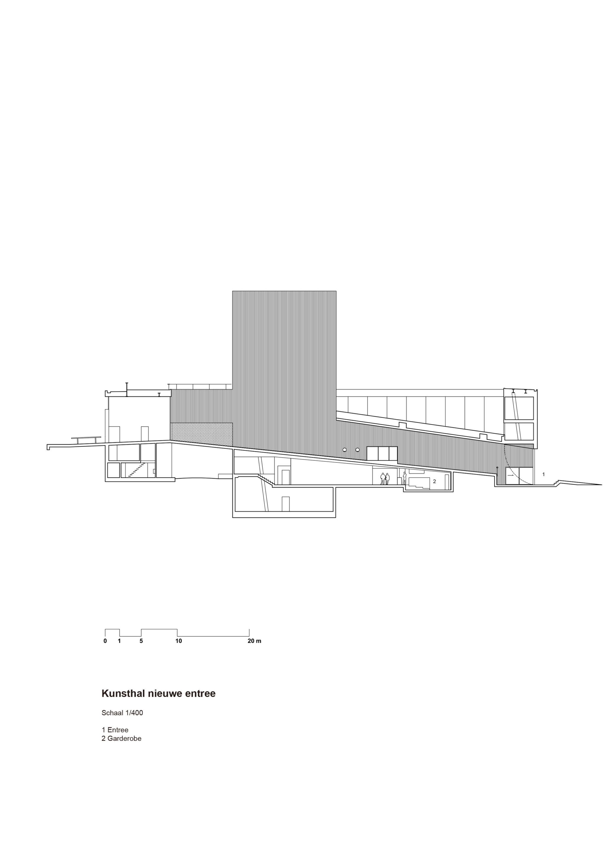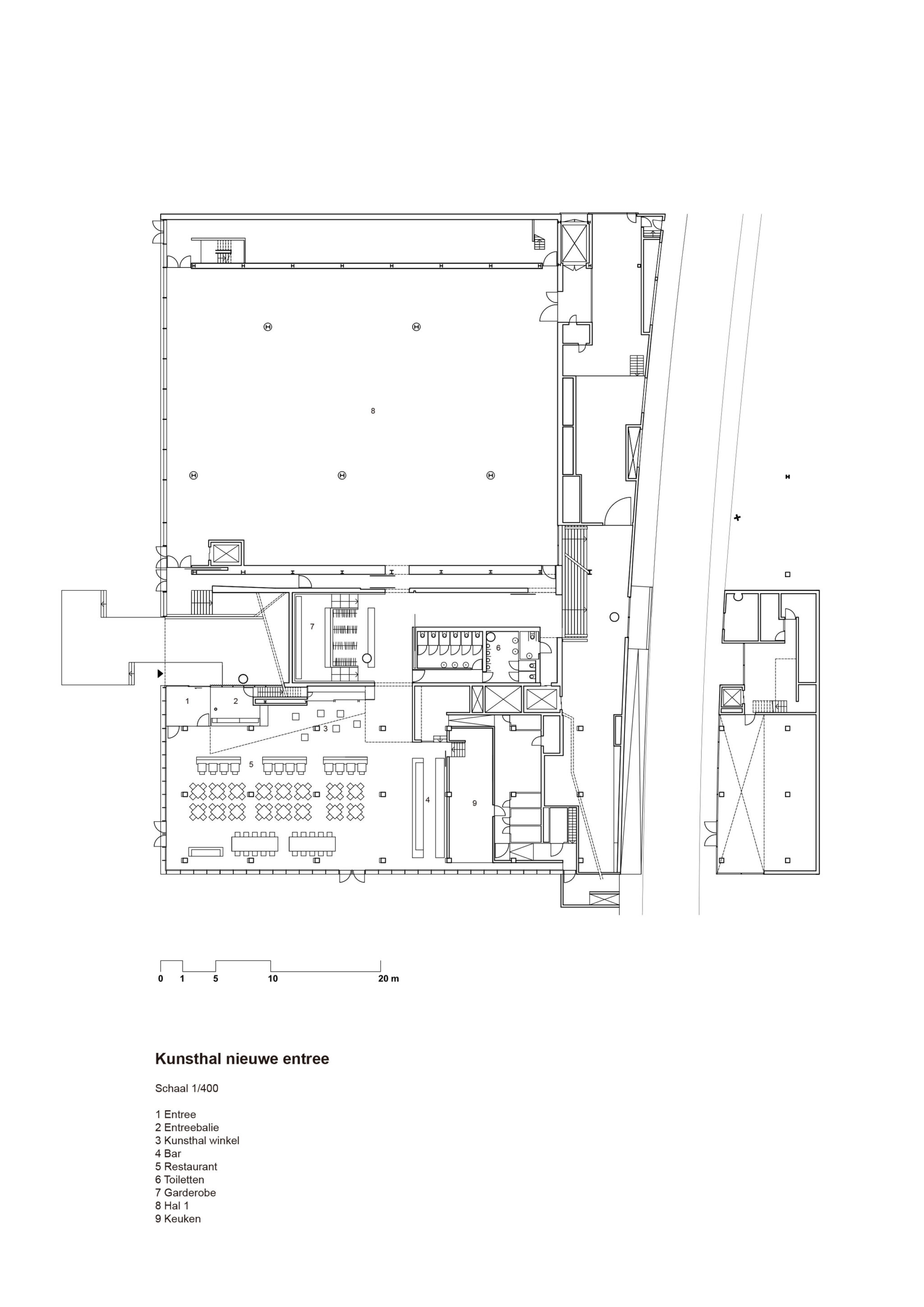 Program: Overhaul of the entire Kunsthal improving its sustainability and flexibility. Design of an extra entrance in combination with a new museum shop, café-restaurant, wardrobe and alternative routing.