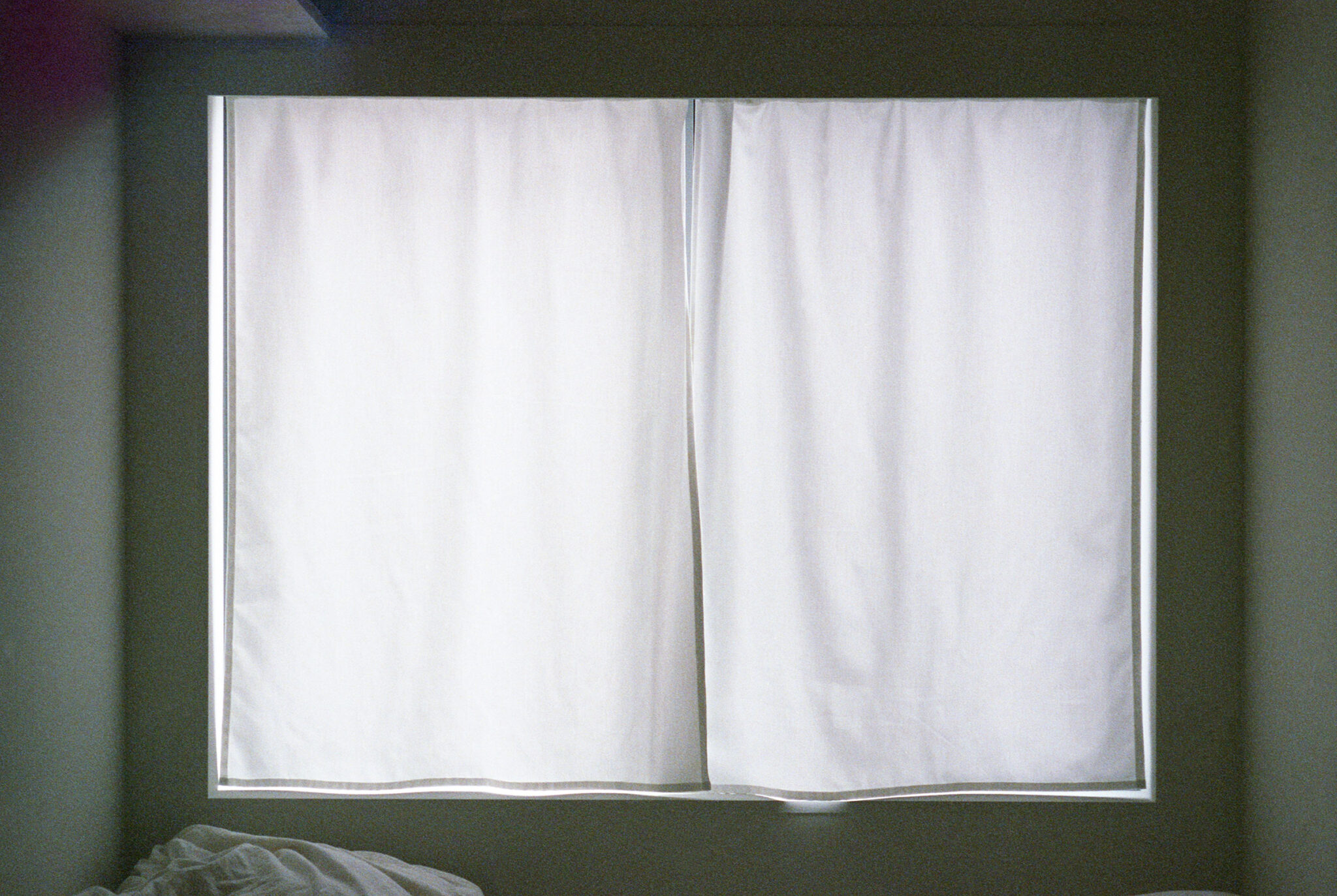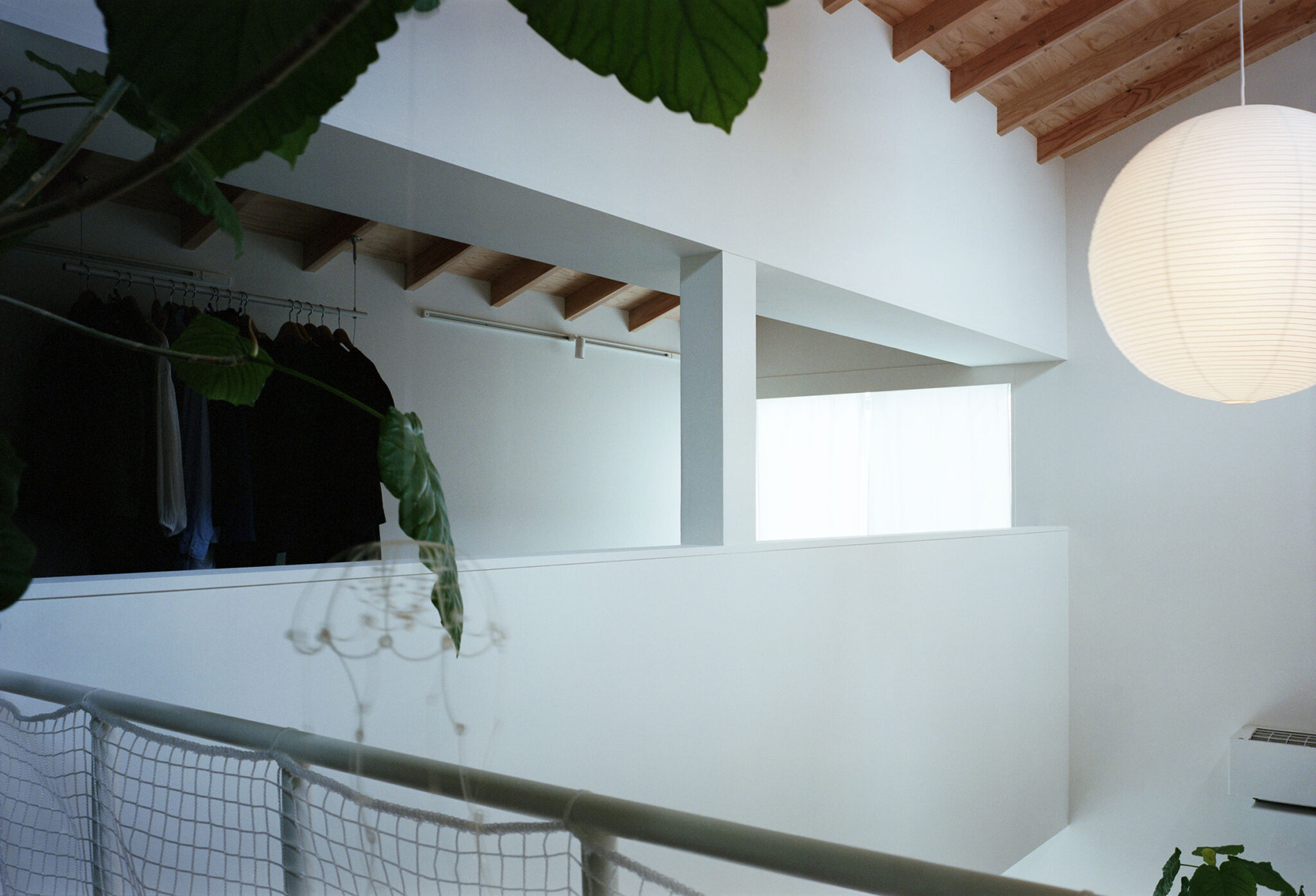 福田俊 / オフィススグルフクダによる、東京・東村山市の住宅「OVERLAP」。空間境界の“オーバーラップ”が生む関係を主題に計画。均質4分割の“単純な平面”ながら、全体を見通せず視線が奥へと流れ“奥行きを想像”させる構成を考案。確かにある“気配”が“現実を超える広がり”を生む2階、ルーム3、開口部を見る。 photo©Yurika Kono