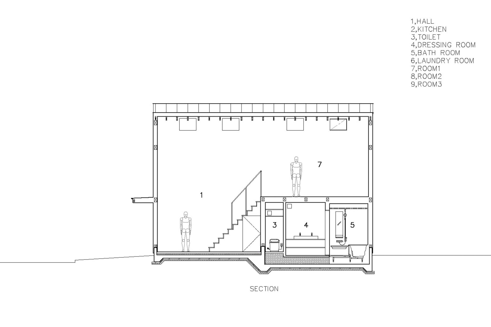 Dramatic sectional changes and differing qualities of light pouring in from the windows introduce distinct flows of time into parallel spaces.