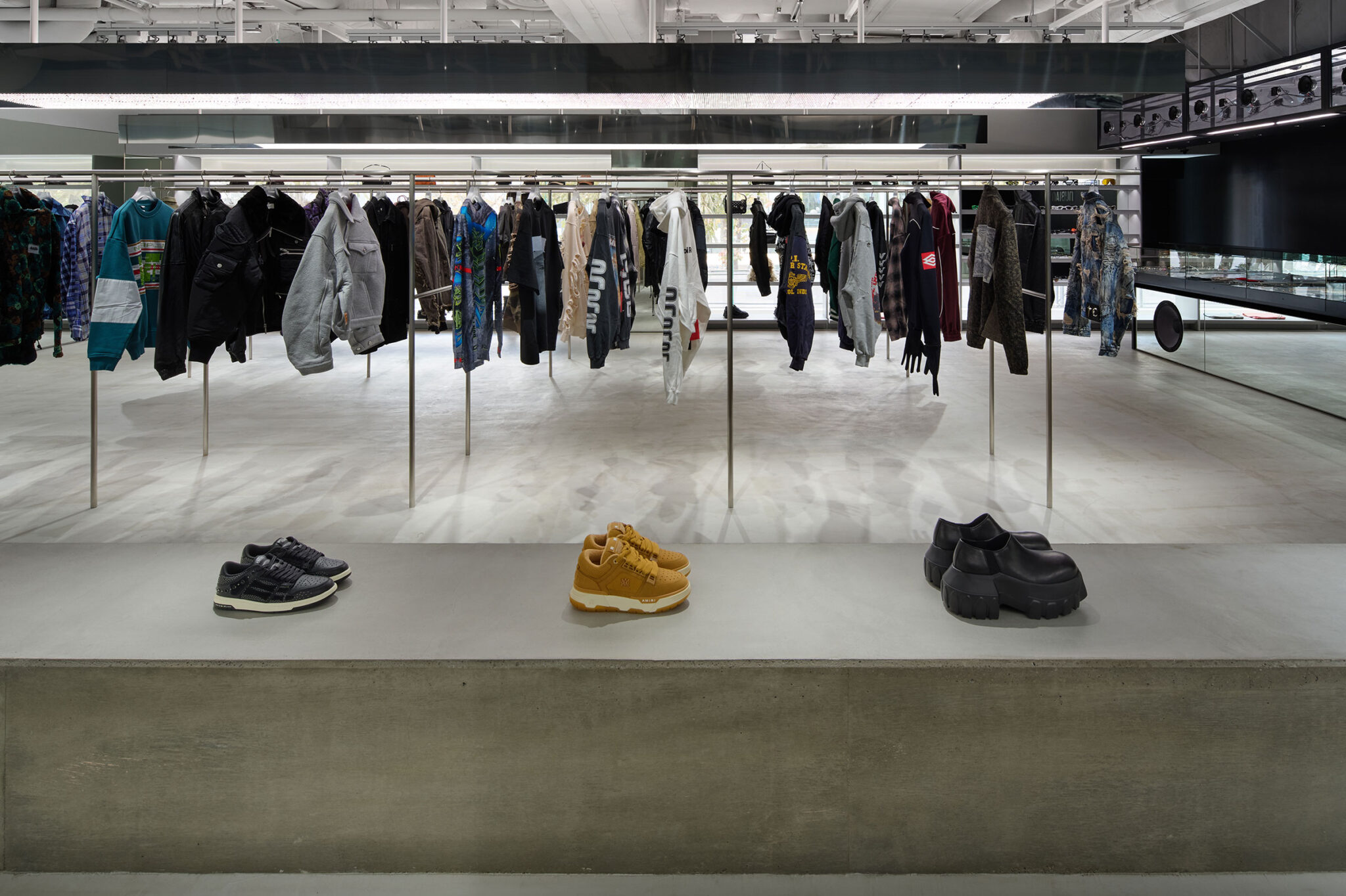 NUBIAN is a select shop that blends global fashion with street culture to create new trends. Following its locations in Harajuku, Shibuya PARCO, Nagoya PARCO, and Osaka, this project marks its first opening in Hokkaido and fourth city nationwide, for which we designed the interior at Sapporo PARCO. The site occupies approximately 265 sqm on the second floor, spanning both the main and annex buildings.