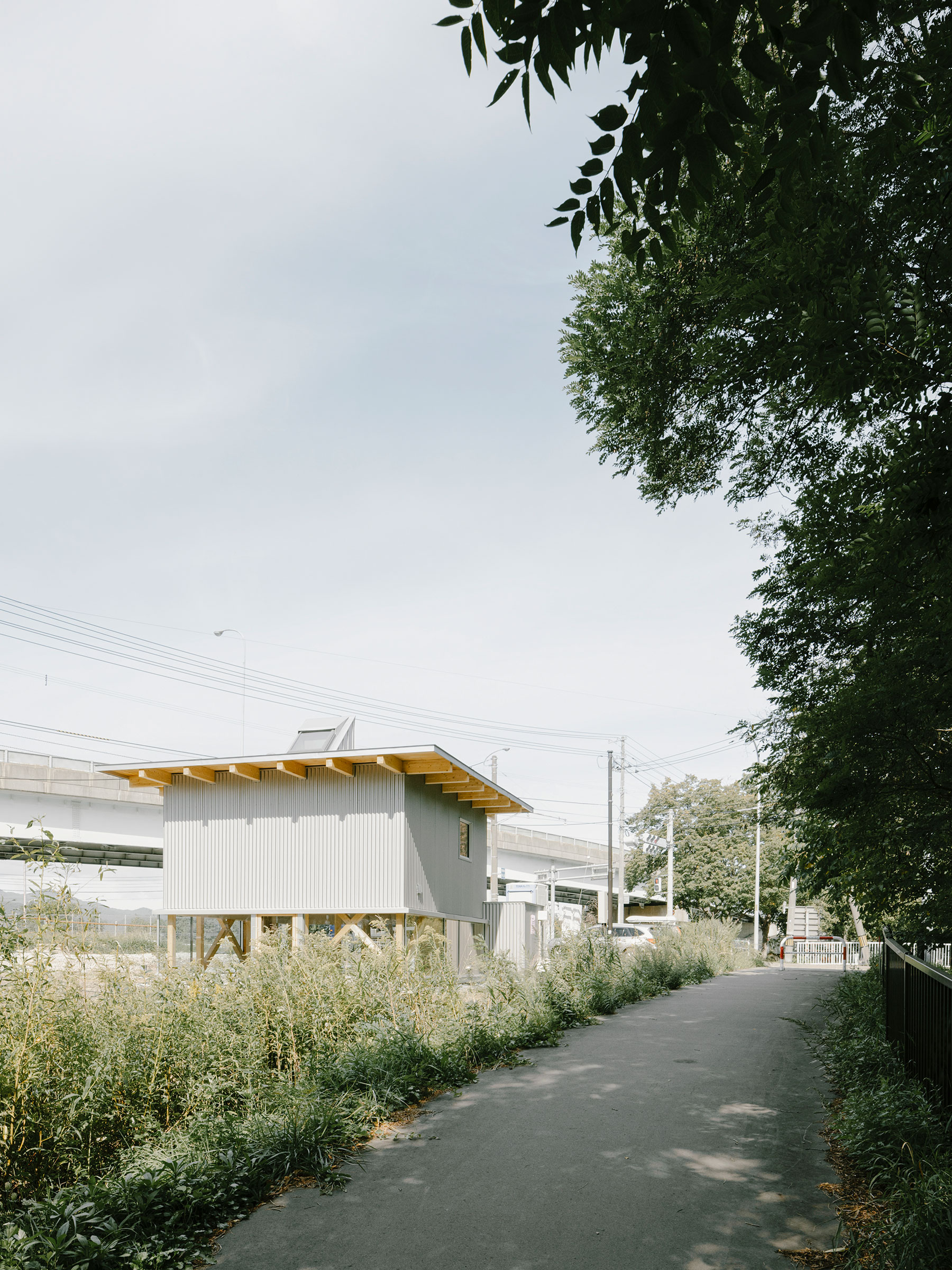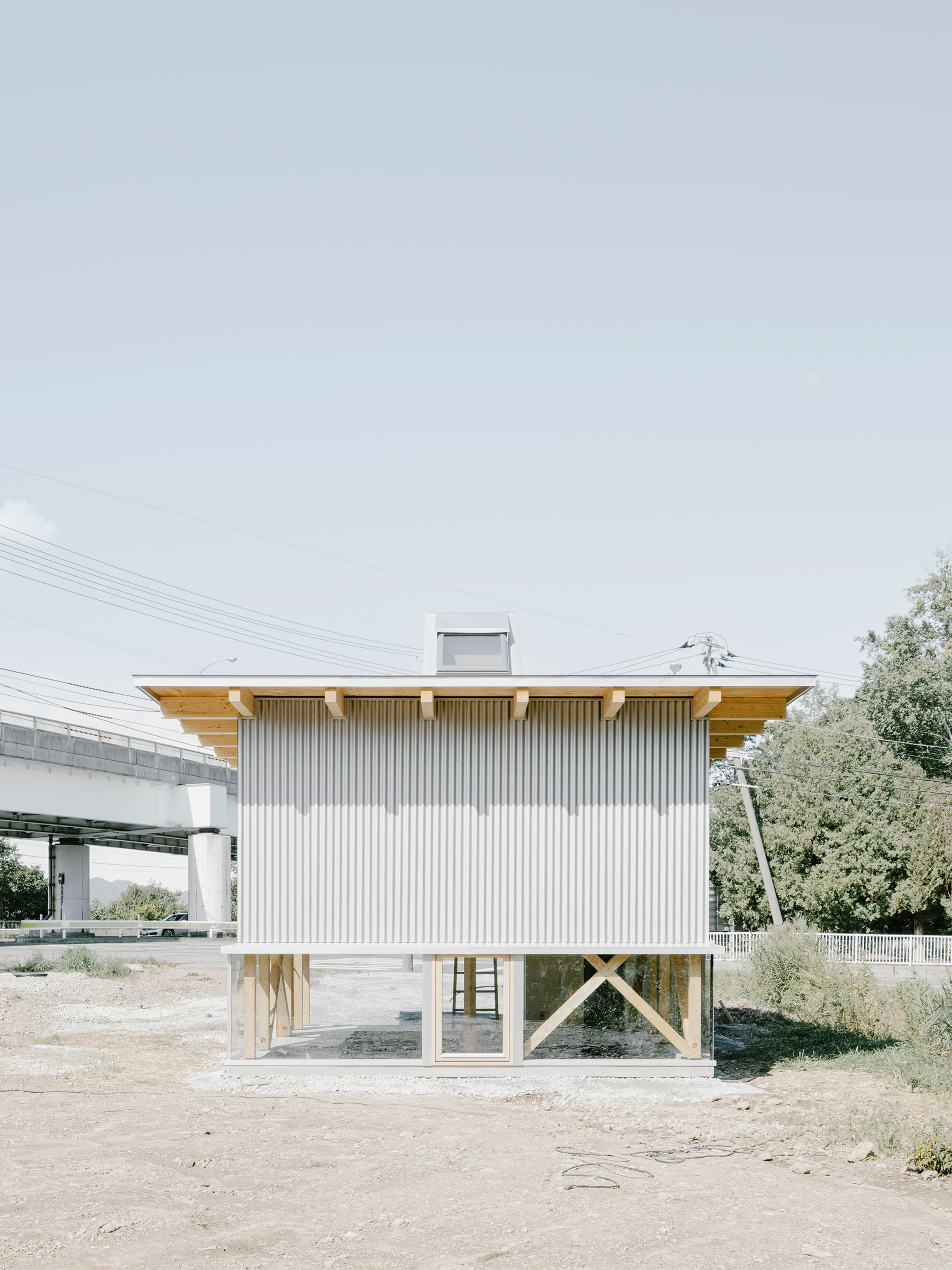 建物は4,550mmの正方形空間と最低限の水廻りで構成されており、このとても小さなフットプリントの中、コストを前提としつつ如何に開放的で自由な空間を作るかを思考した。