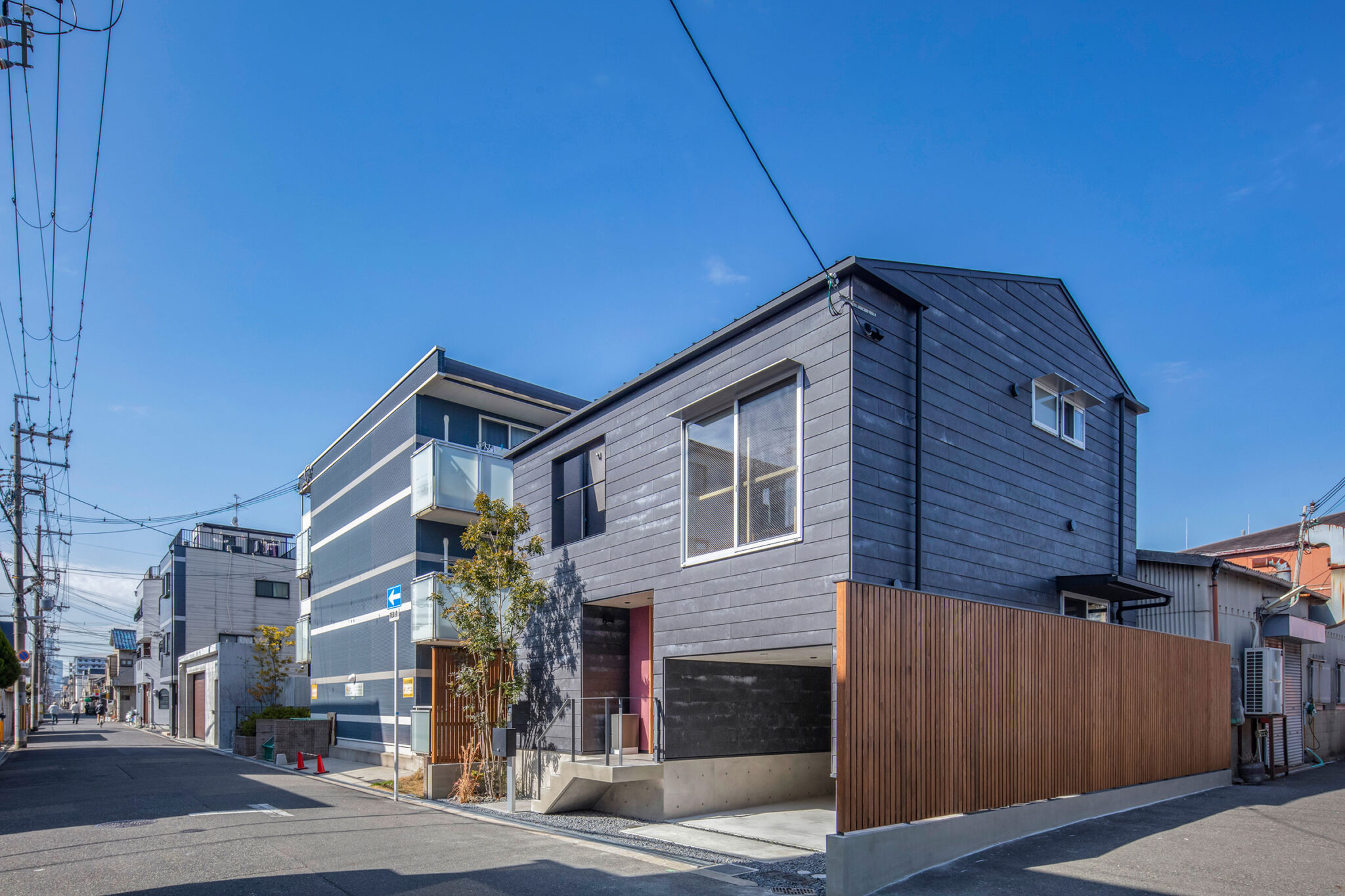 当初は愛着のある住まいに住み続けるべく耐震改修を検討したが、耐震診断の結果躯体の老朽化が著しいことが判明し建替えることとなった。施主は計画地に隣接する金属研磨工場を長年営んでいる。家の想い出を語る施主の表情を見て、毎日この家をながめながら仕事を行う施主にとって、この家は住まい以上の大切な記憶の器なのだと感じた。
