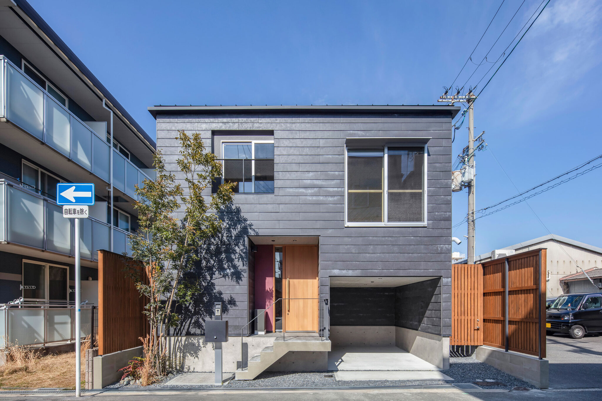 小林敬政による、大阪市の「K邸」。施主家族が40年以上暮らした住まいの建替。既存を建物を超えた“記憶の器”と捉え、刷新ではなく“継承”する設計を志向。旧家屋の間取りを参照して“再構築”した平面構成で“空間体験”を通して記憶を喚起する 外観、南側の道路より見る。 photo©多田ユウコ写真事務所