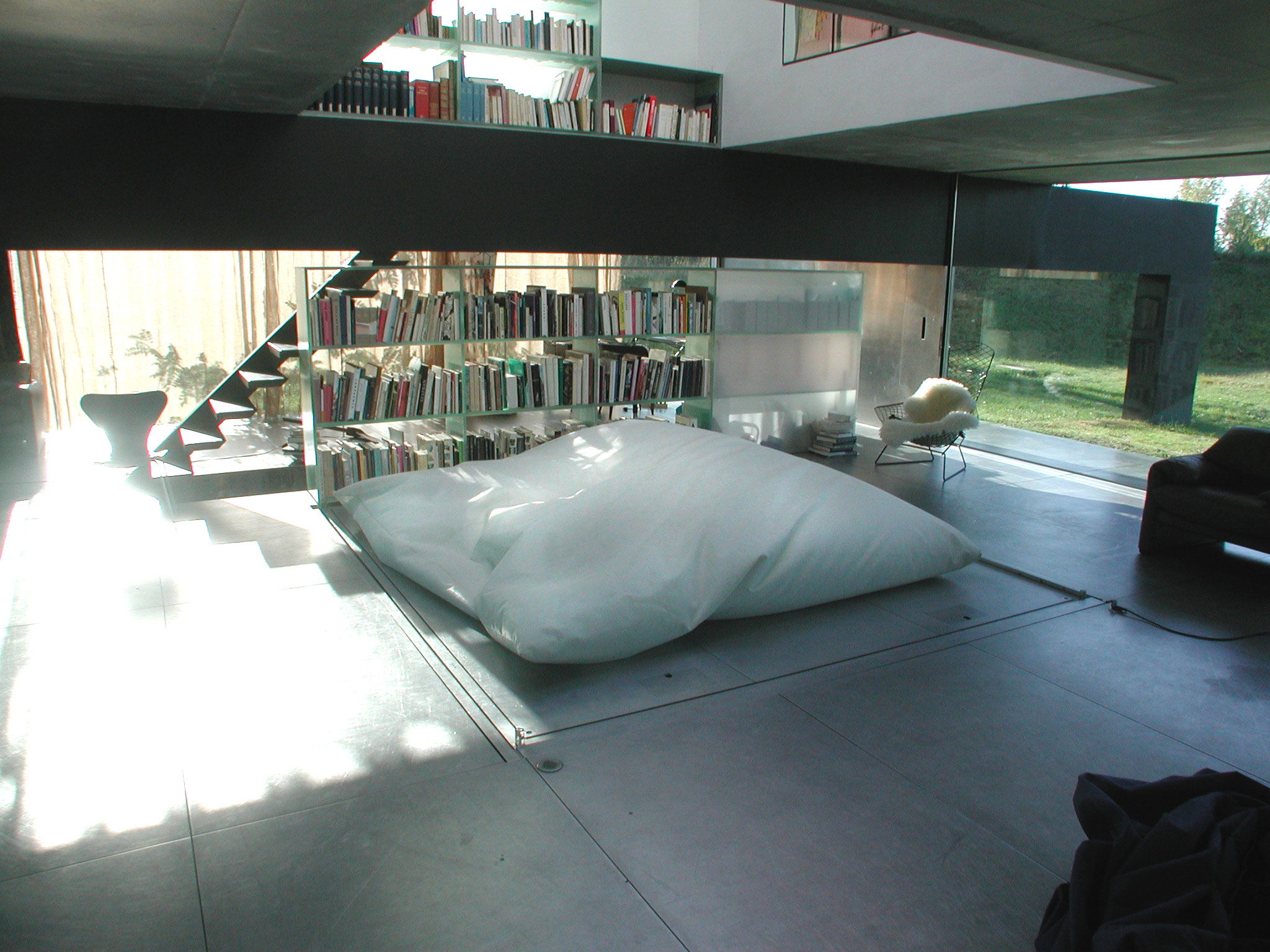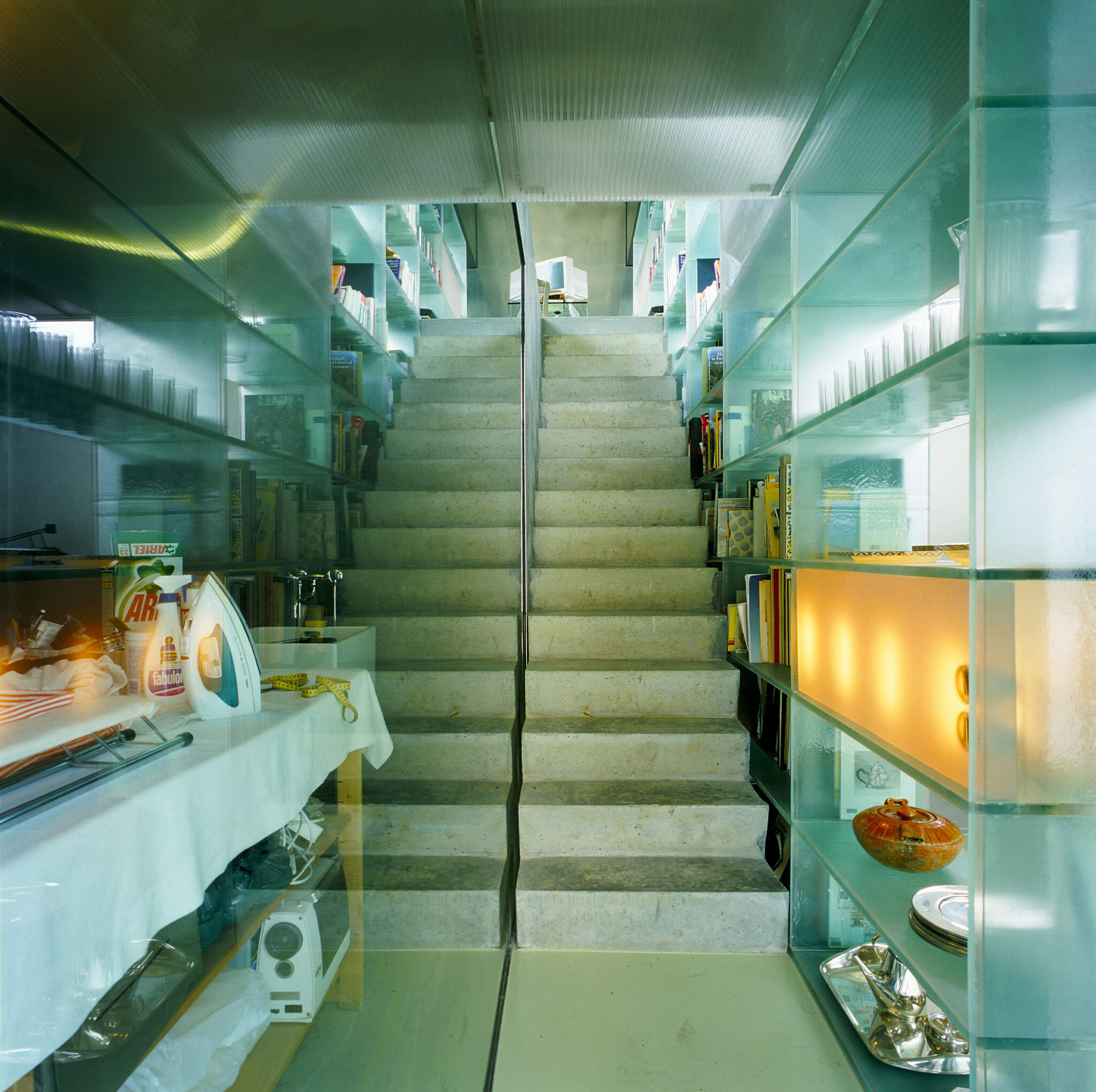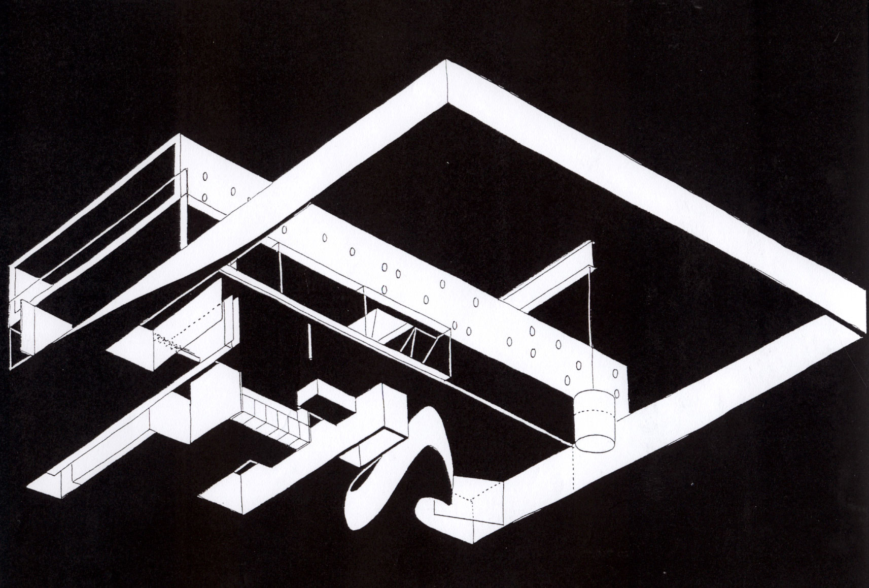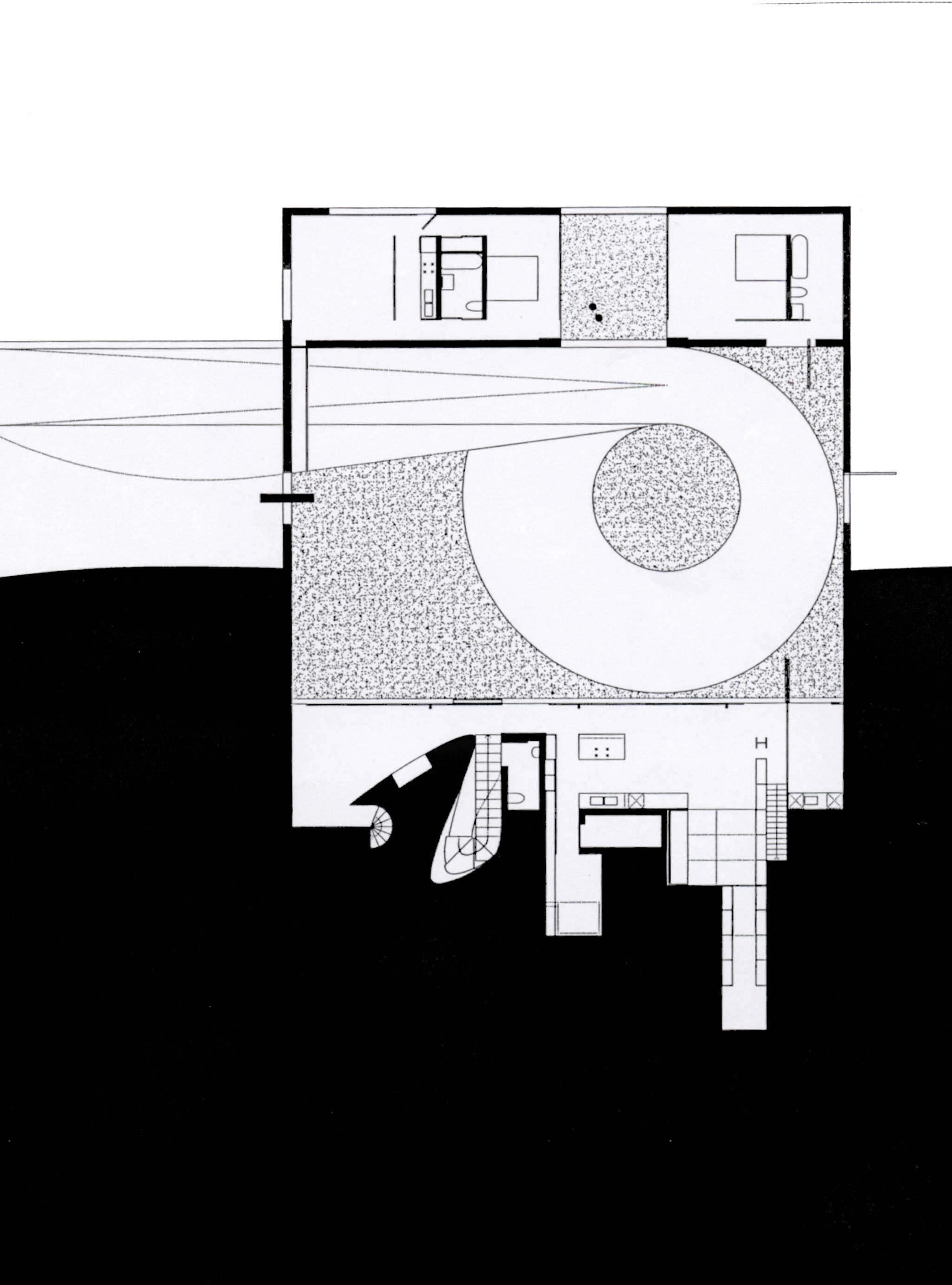 The architect proposed a house – or actually three houses on top of each other. The man had his own ‘room’, or rather ‘station’: the elevator platform. The movement of the elevator continuously changes the architecture of the house. A machine is its heart.