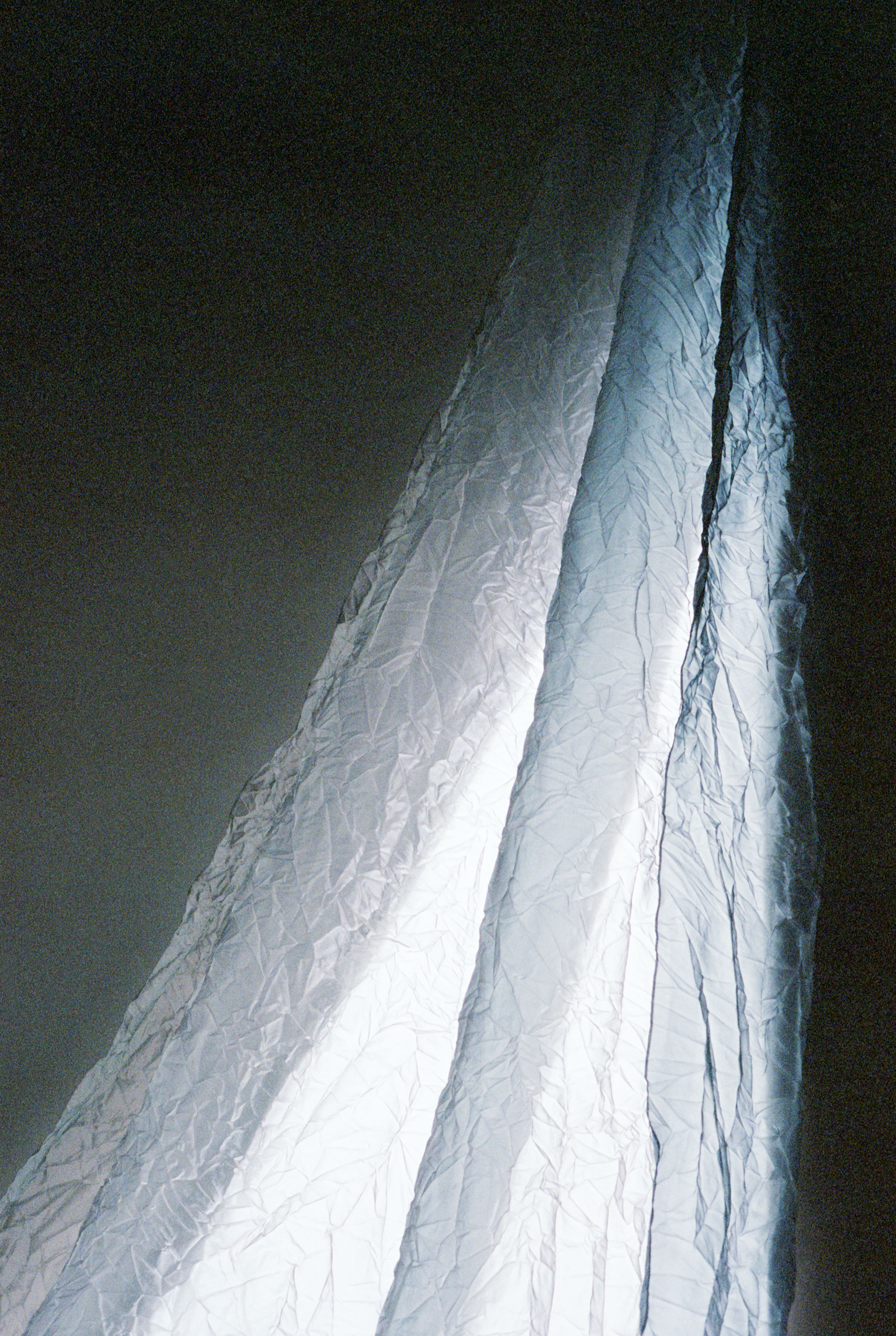 切り取られた屋根の隙間に開けた窓から光が入り込んで曲面の屋根を横から照らし、時刻ごとに変化していく光の色を空間全体に拡散させている。設計を通じて布の下にできた空間に家族それぞれが自分にとっての居場所を見つけて、それぞれが思い思いに過ごすような生活を想像した。