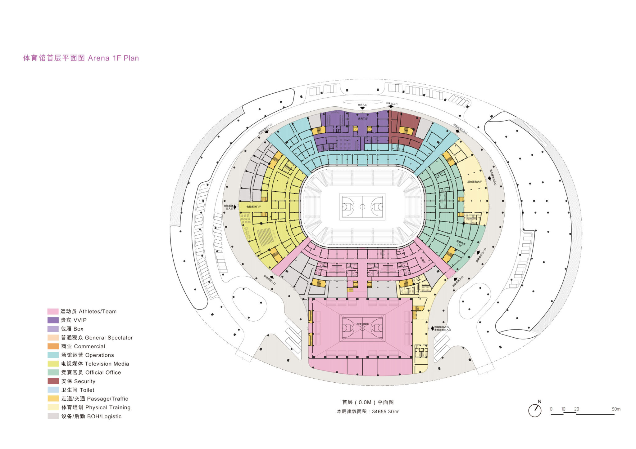 The sports centre also integrates environmental concepts from the local Lingnan vernacular architecture that include generous areas of sheltered spaces cooled with effective natural ventilation techniques during the region’s humid subtropical summer months.