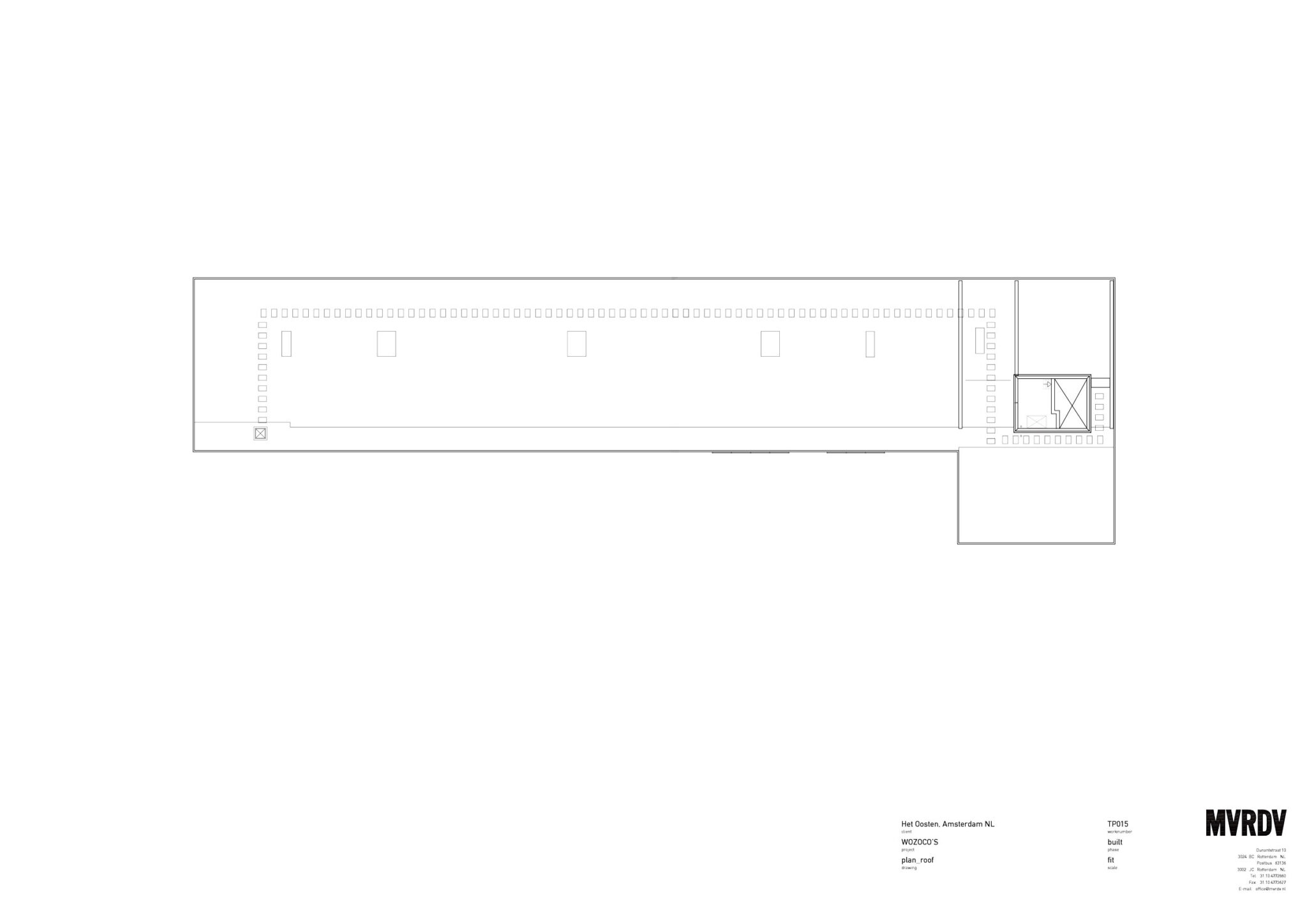 The Western Garden Cities of Amsterdam built in the 1950s and 1960s, were confronted with big increases in density that continue to threaten their open green spaces, the most important quality of these areas. As part of this operation, a block of 100 apartments for people over 55 years was proposed to mark the end of a facility strip for the elderly.