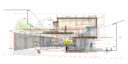 Eureka・早田大高事務所・佐野研究室による、さいたま市の「ブルー・ボックス・オフィス」。北向きで隣地と高低差もある敷地。“明るい空間”を求め、1階を“地域に開かれた空間”として全面開放すると共に2階の高窓からの光を内部で拡散させる建築を考案。極力壁を設けず“一体的な使用”も可能にする矩計図 image©Eureka+早田大高設計事務所+慶応大学佐野研究室