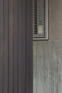 森田悠紀建築設計事務所による、東京の「上目黒の家」。往来のある緑道に面した敷地。内外の“適切な関係”の構築を求め、壁柱を並べて“視線の抜けを確保”しつつ“外からの斜めの視線を遮る”建築を考案。土地の様々な条件に応えた末に“回廊の様な空間”が立上がる建具 photo©西川公朗
