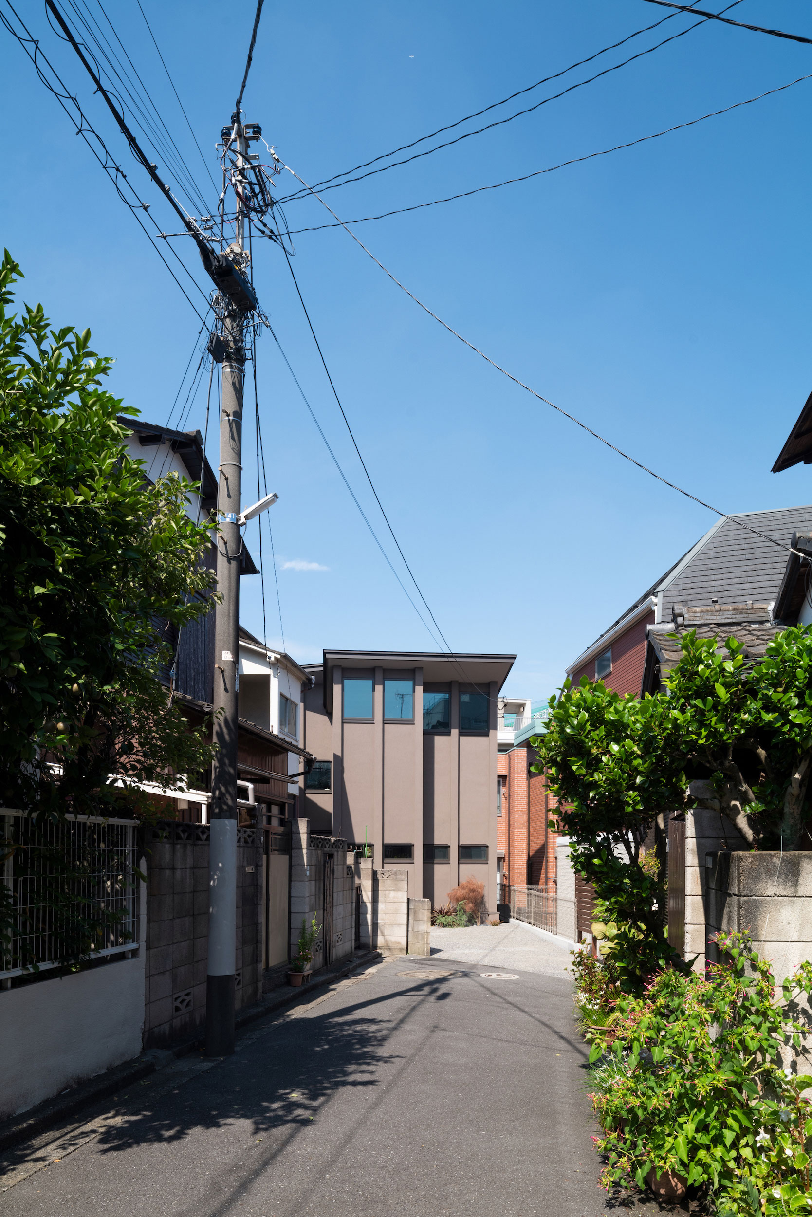 かつての川は人びとが行き交う緑道へと姿を変え、この家もまた庭木の成長と共に緑に包まれていく。こうした変化の中で、建築が変わらず人の感覚を「今」へと導く存在となることを目指した。