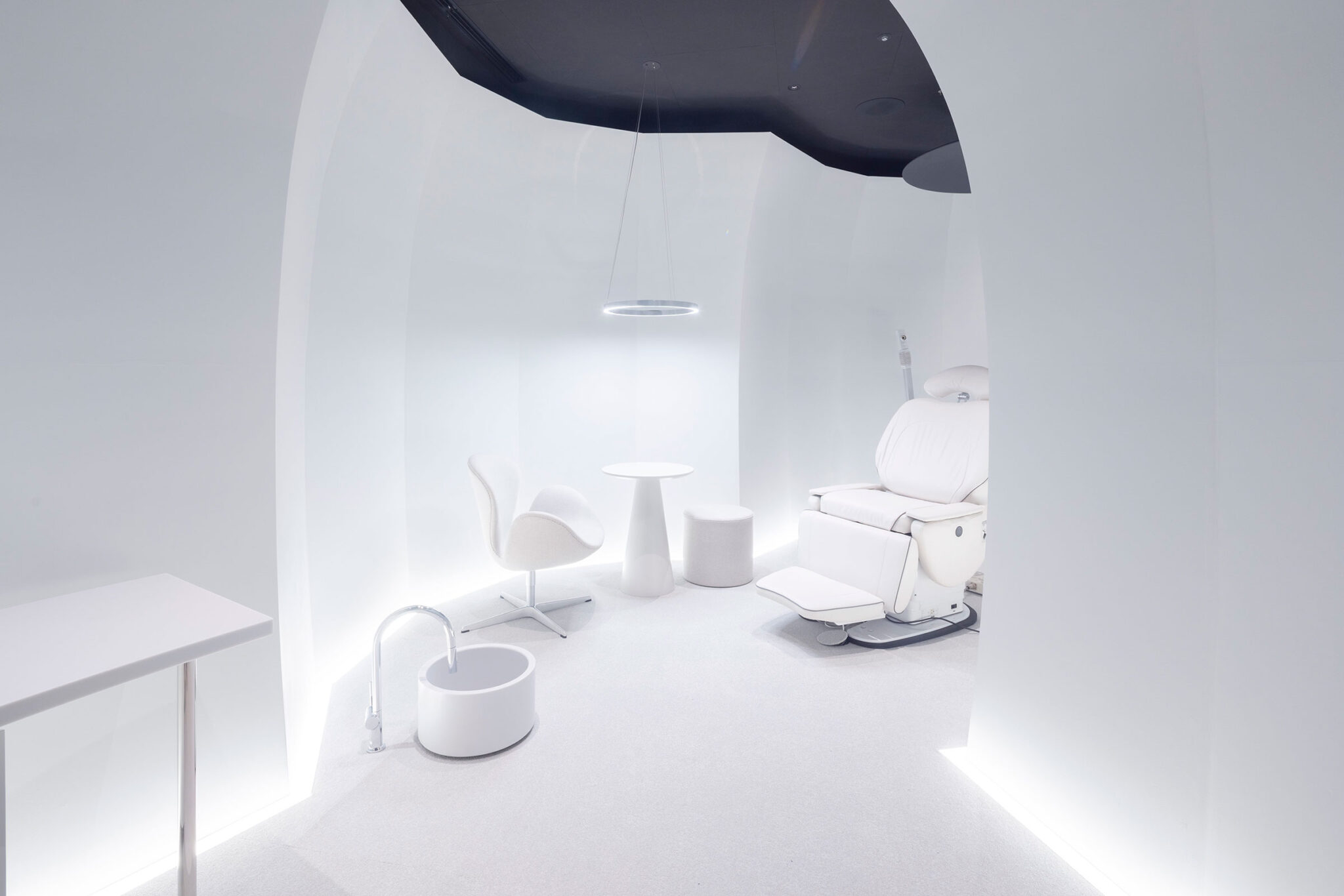 妹島和世による、東京・銀座の店舗「ポーラ ギンザ」。化粧品メーカー“ポーラ”の旗艦店。1階の店舗フロアは、“花や植物”に包まれた“森のような新しい庭”として構想。地下1階のエステフロアは、自分を開放する深い旅へと導く“静謐な空間”とする地下1階、エステフロア 写真:新津保建秀