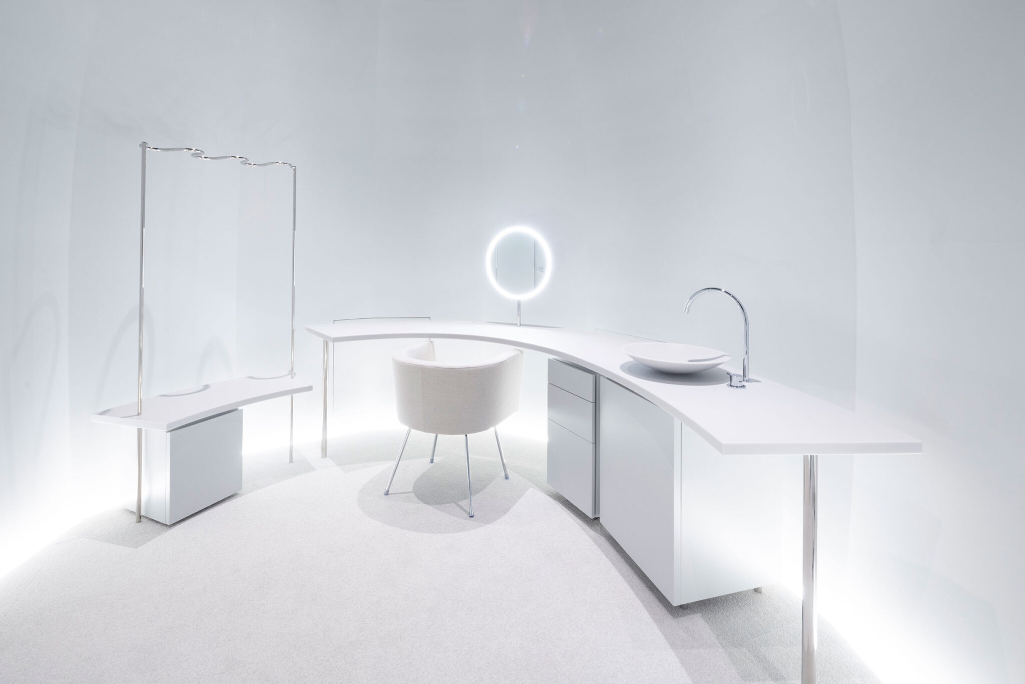 妹島和世による、東京・銀座の店舗「ポーラ ギンザ」。化粧品メーカー“ポーラ”の旗艦店。1階の店舗フロアは、“花や植物”に包まれた“森のような新しい庭”として構想。地下1階のエステフロアは、自分を開放する深い旅へと導く“静謐な空間”とする地下1階、エステルーム1 写真:新津保建秀