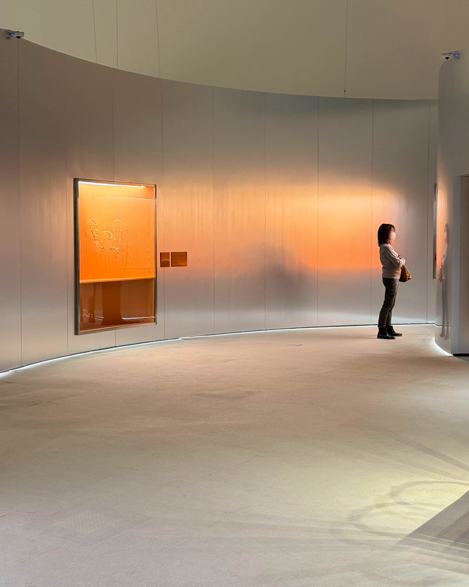また、改めて振り返ると、現代美術のアート作品ではなく、宝飾品という、小さなものを多数展示するという与件に対して、このイチョウ型平面ユニットの組み合わせで展示室を作るという計画が非常に優れた答えだったのだと思った。