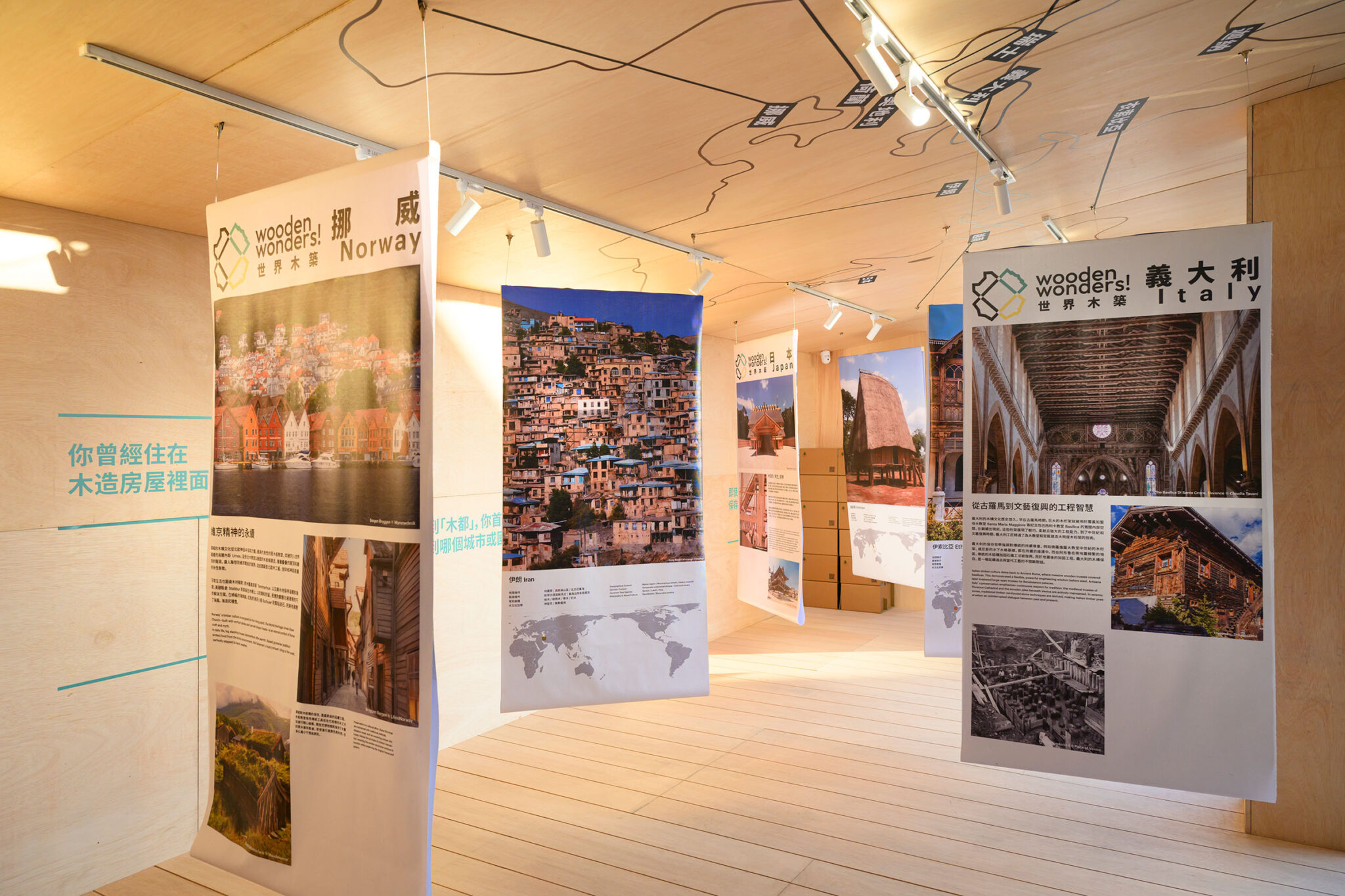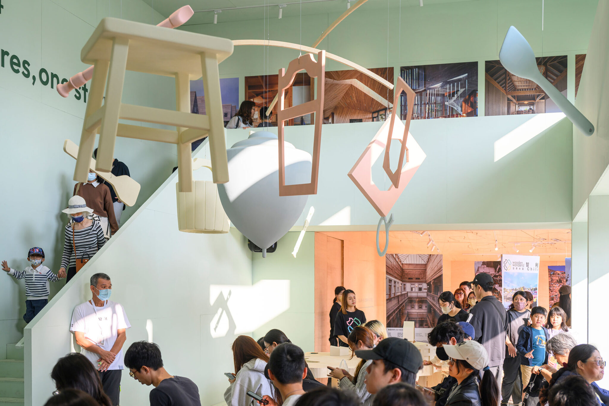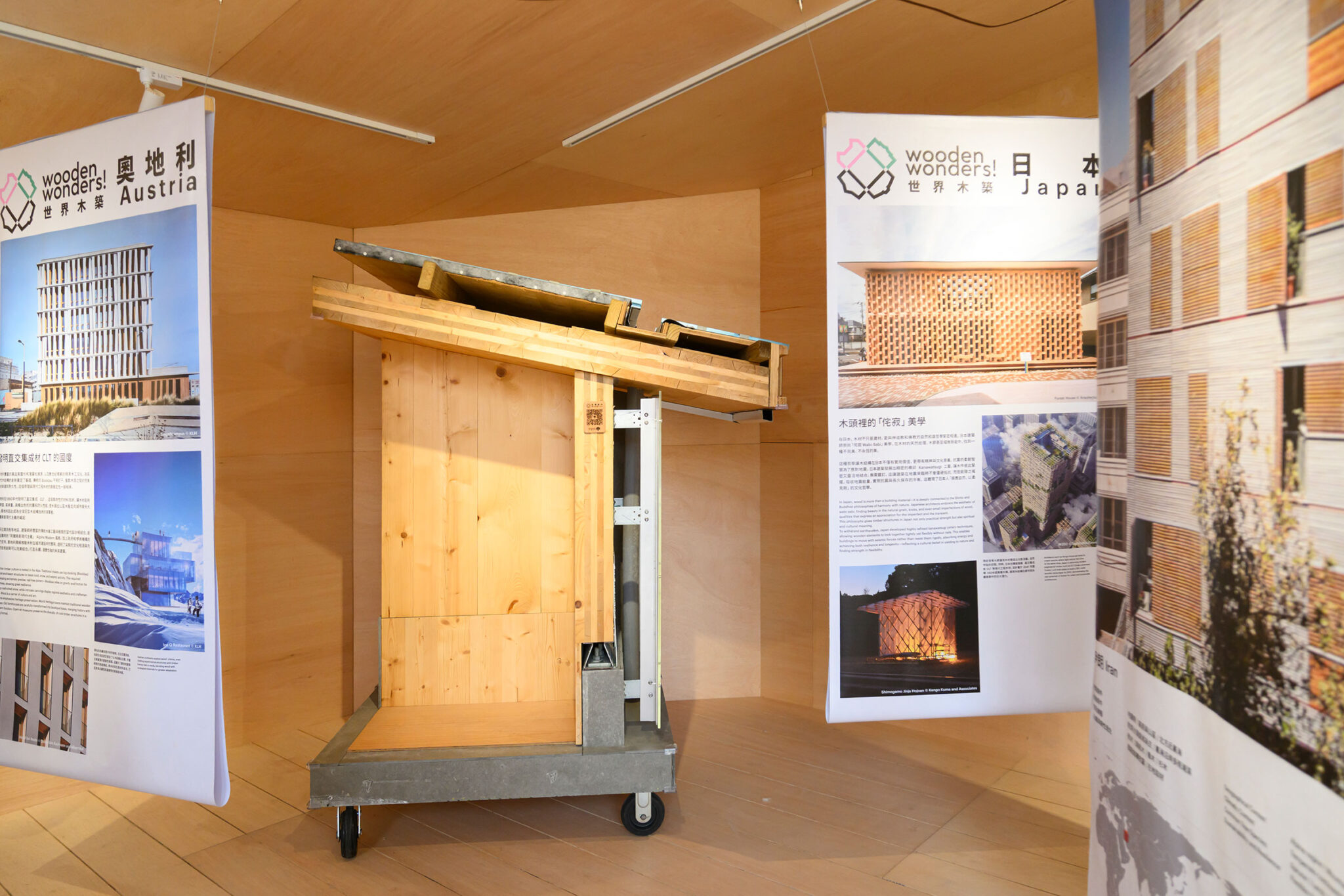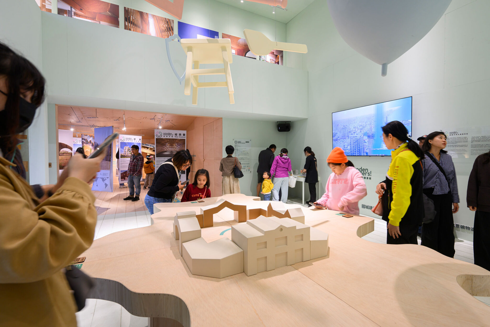 The remaining three sections are dedicated to Chiayi’s potential as Taiwan’s “Wood Capital”. The exhibition draws parallels to regions all around the world, from Norway to New Zealand, showing how other places developed their wood traditions, and how they have adapted to modern conditions to maintain this culture up until today. In the main hall – a two-storey space that takes up the northern side of the pavilion – the exhibition presents Chiayi’s timber future, inviting visitors to imagine what life could be like with a reinvigorated wood culture, and to make suggestions for the city’s future development.