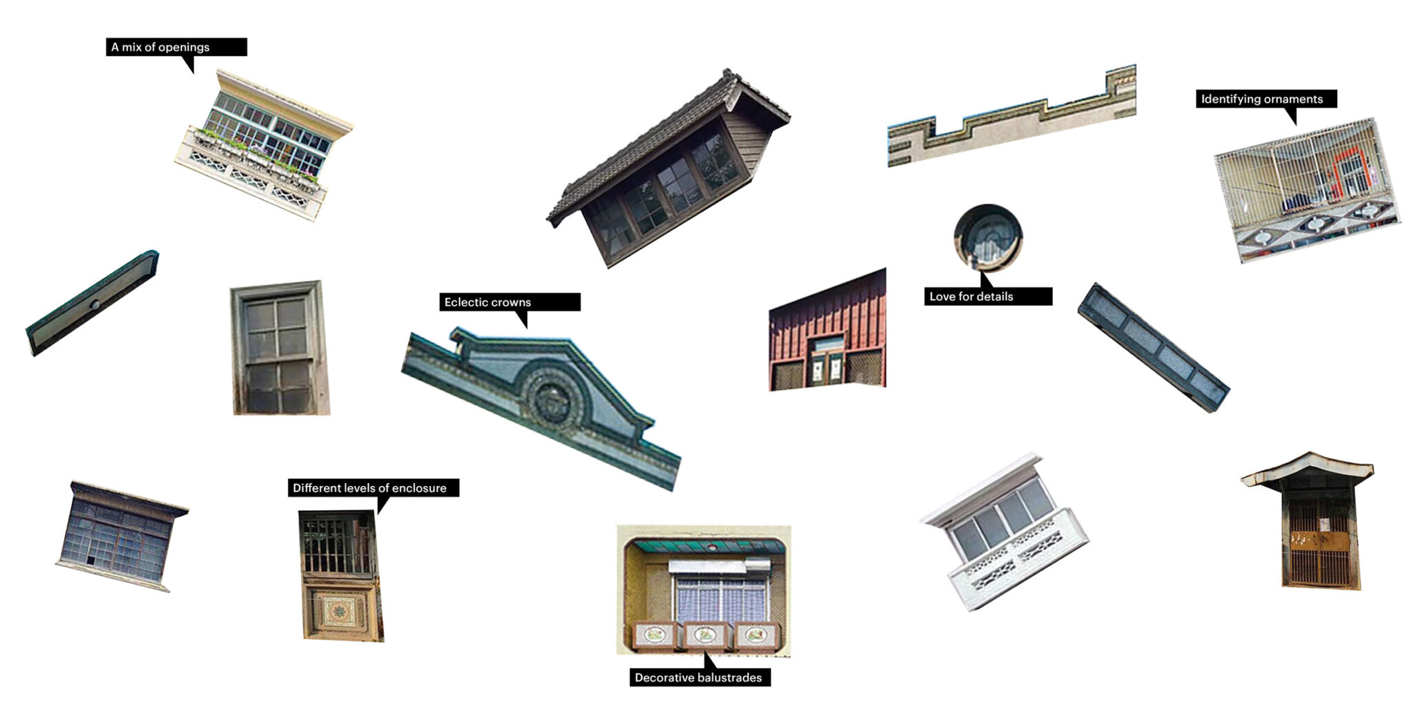 For the design of the pavilion, MVRDV began with an architectural study of the existing timber buildings of Chiayi. What they found was an eclectic mix: timber buildings were represented in a wide variety of time periods and styles; nevertheless, the design team did identify a number of common features that distinguished Chiayi’s timber architecture, such as diagonal cuts to emphasise street corners, and elaborate rooflines resulting from ornamental crowns and decorative facade elements.