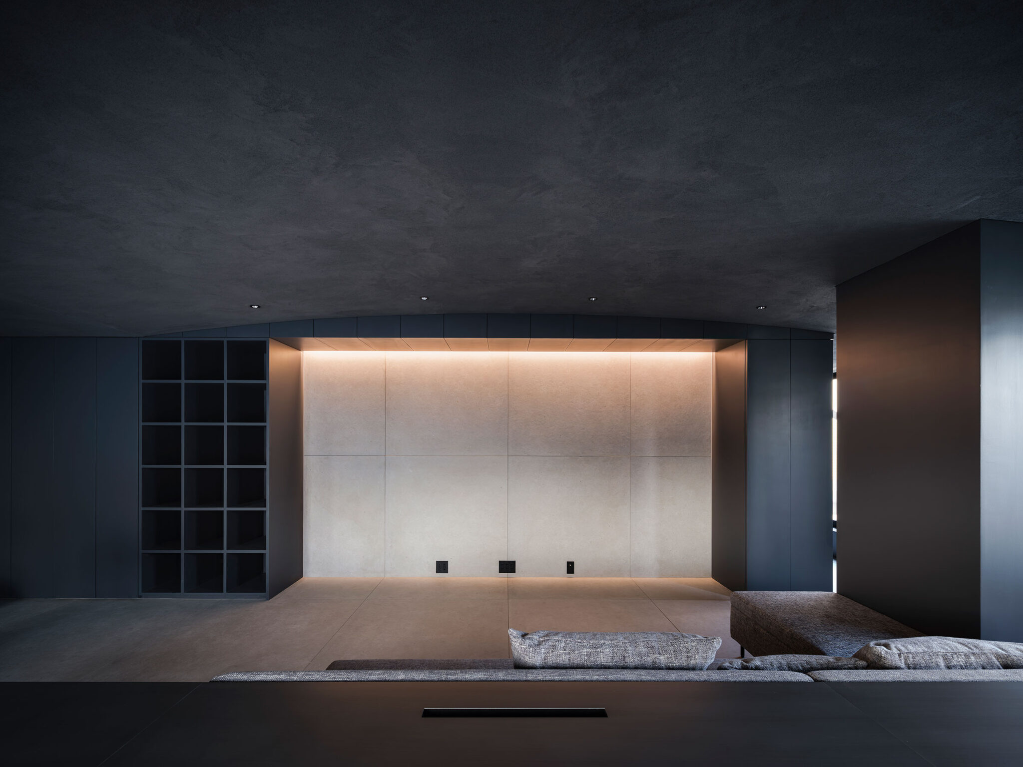 映画鑑賞を趣味とするクライアントは、生活の一部としてシアタールームを設けるのではなく、シアタールームそのものの中で暮らすような日常を望んでいた。