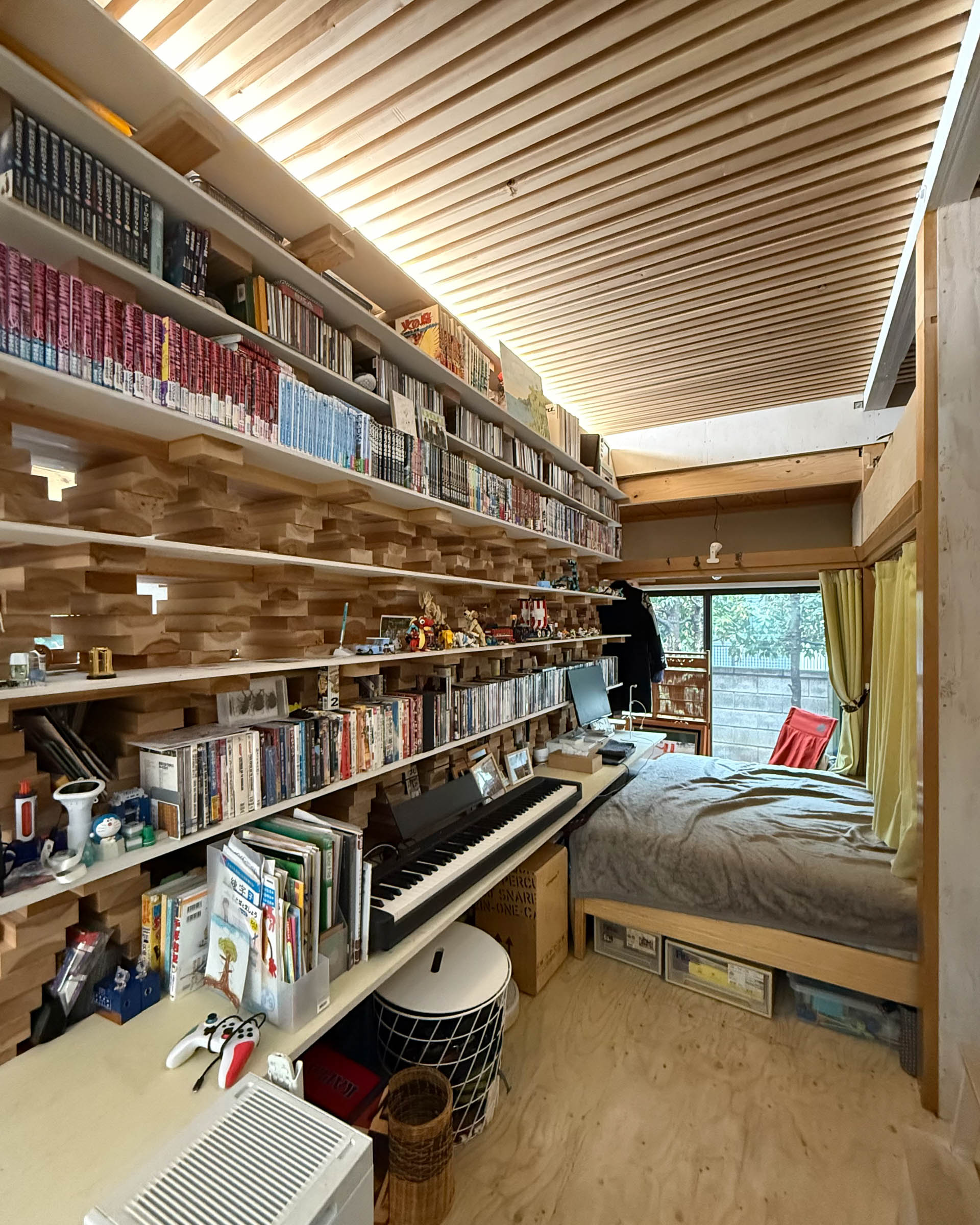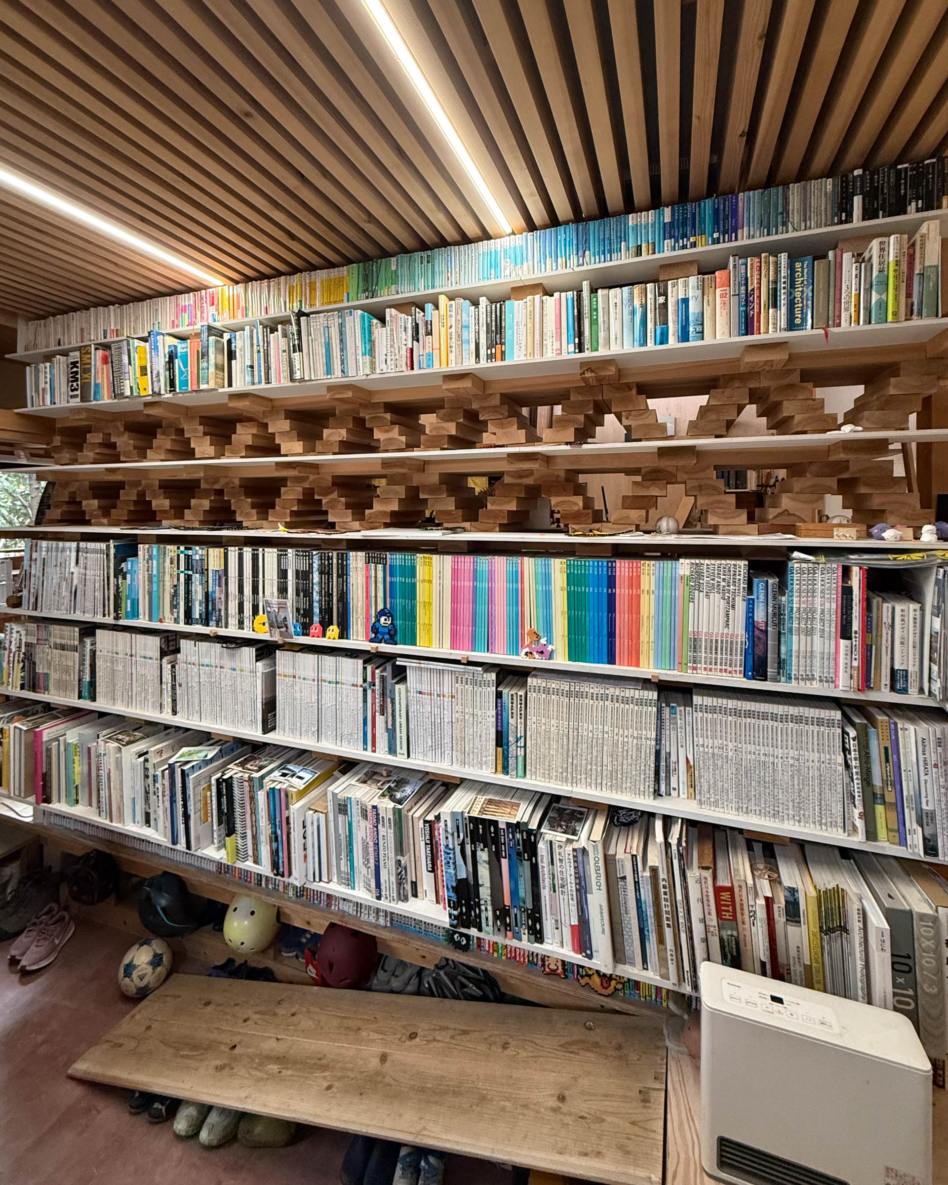 本がない時には、もっとそれ自体のデザインがよく分かるのだけれど、本が入っているとその性質が、部屋の機能にも寄与している感じがして面白かった。